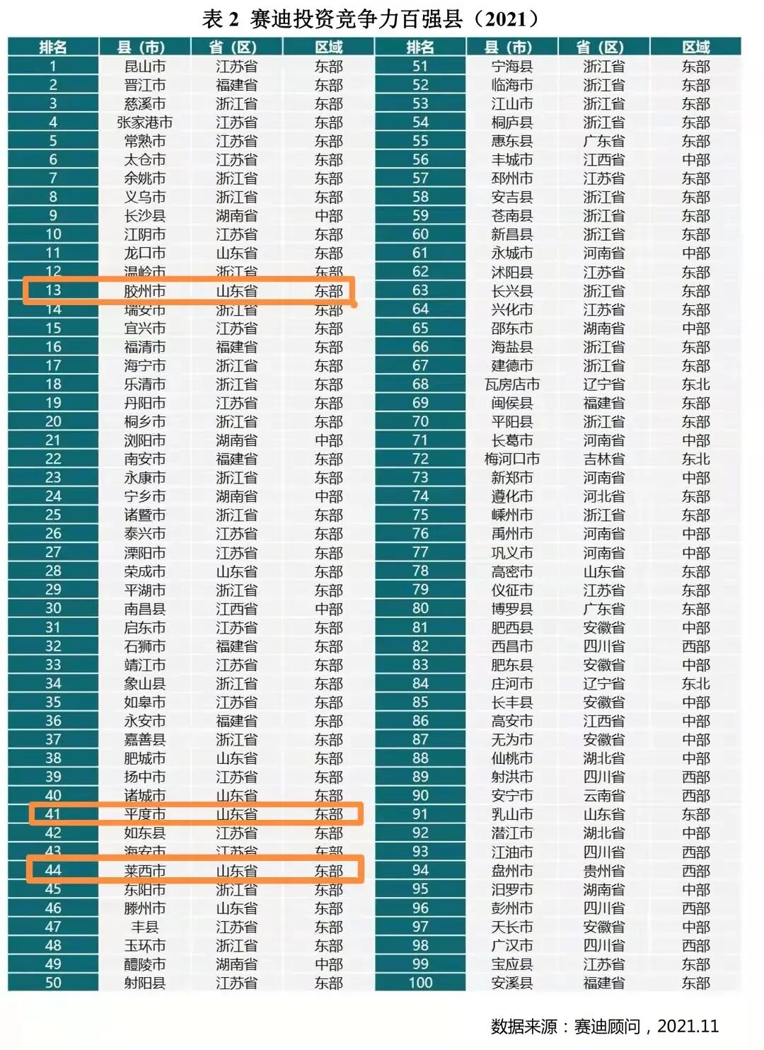 山東有10個(gè)縣(市)進(jìn)入投資競爭力百強(qiáng)縣,分別是龍口市、膠州市、榮成市、肥城市、諸城市、平度市、萊西市、滕州市、高密市、乳山市。