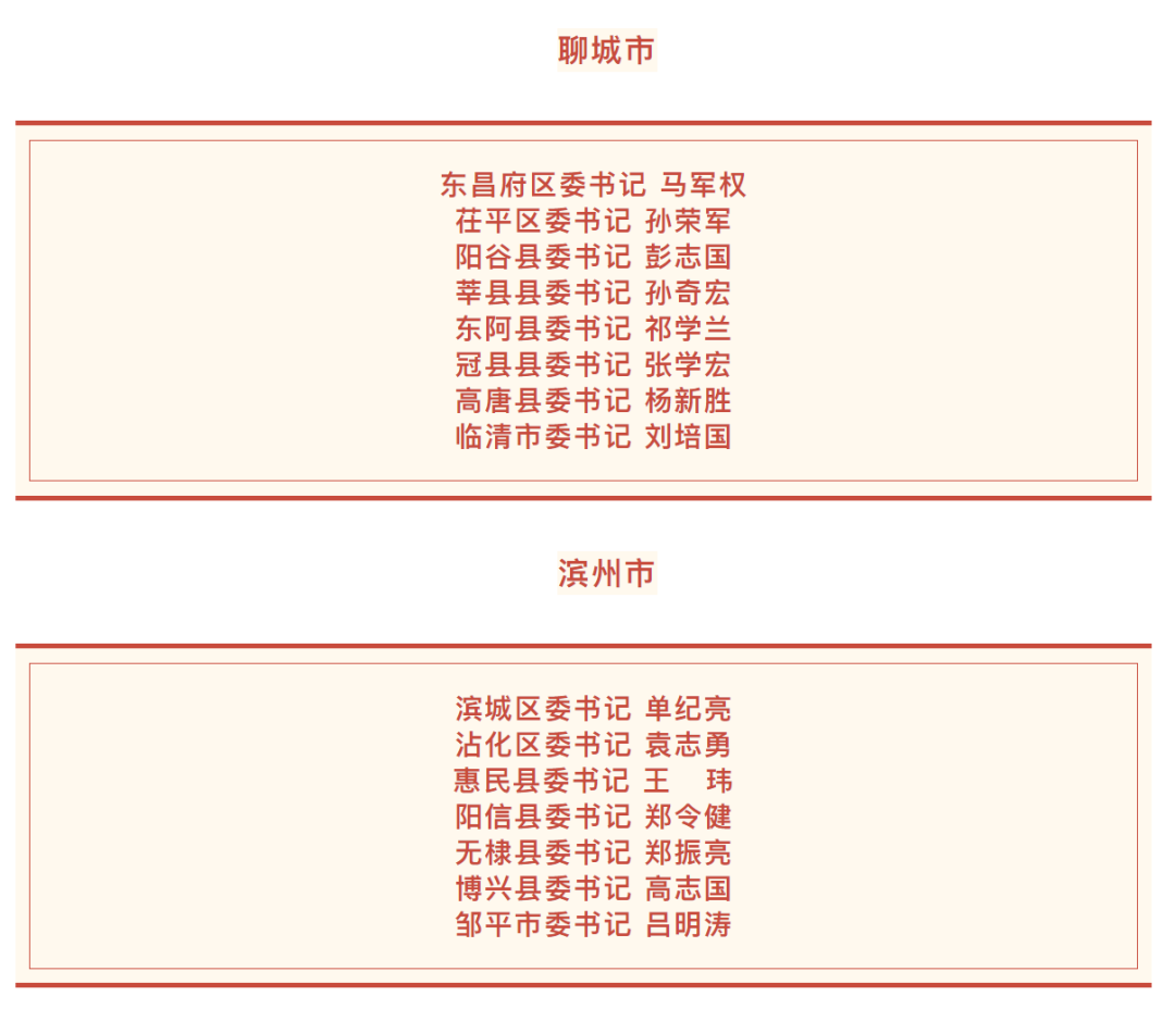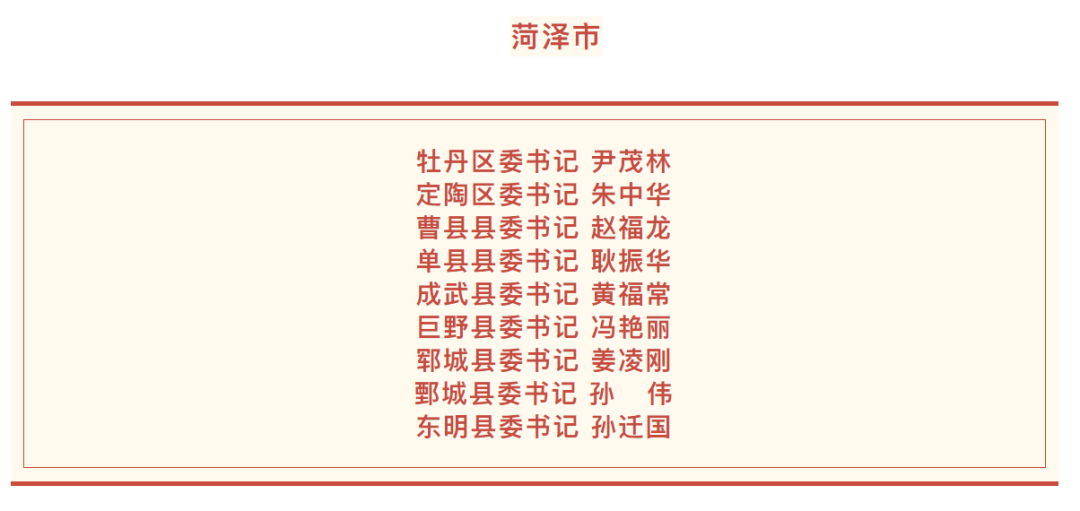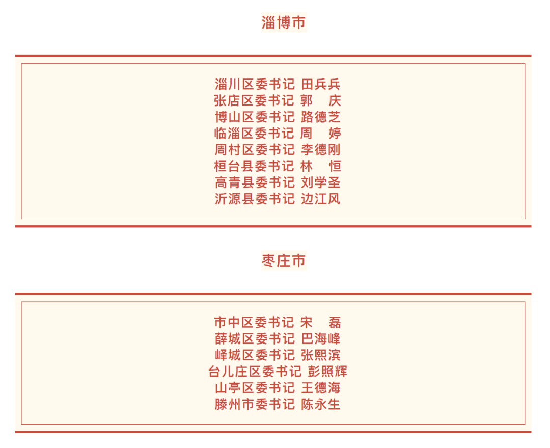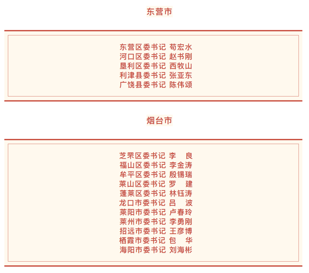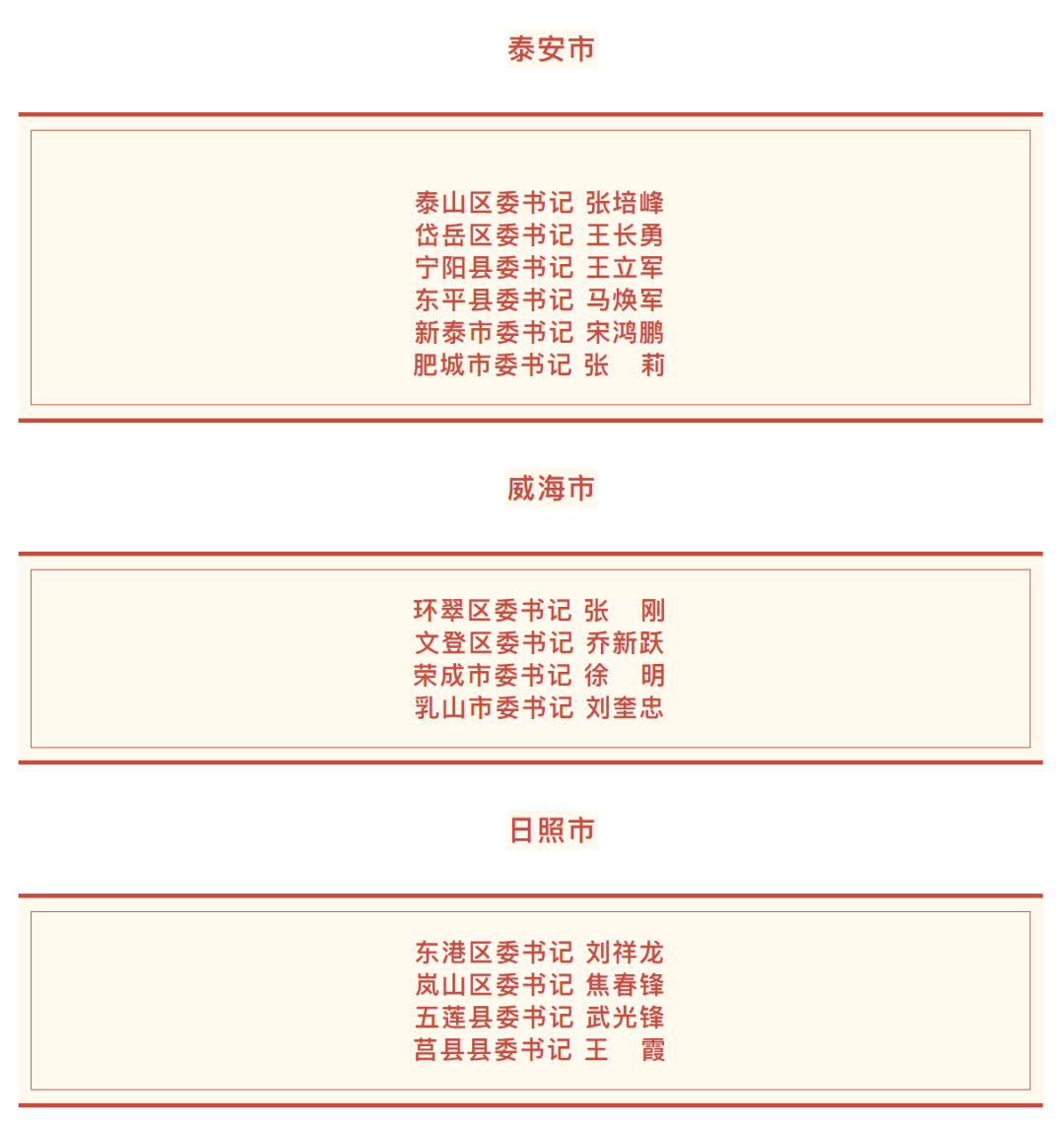 日前,山東136個縣(市、區(qū))黨委領(lǐng)導(dǎo)班子換屆工作基本完成,各縣(市、區(qū))新一屆黨委書記名單如下。