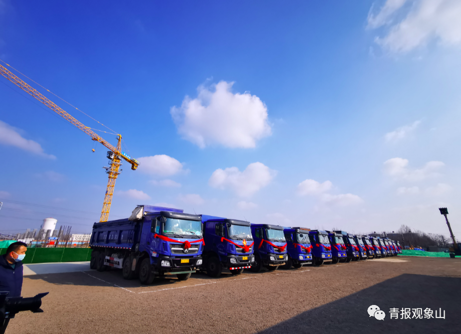 這里是青島市2022年春季重大項目集中開工活動的主會場,一輛輛挖掘機、重型卡車等整裝待命,在“項目開工”的一聲令下立即投入建設(shè)工作。