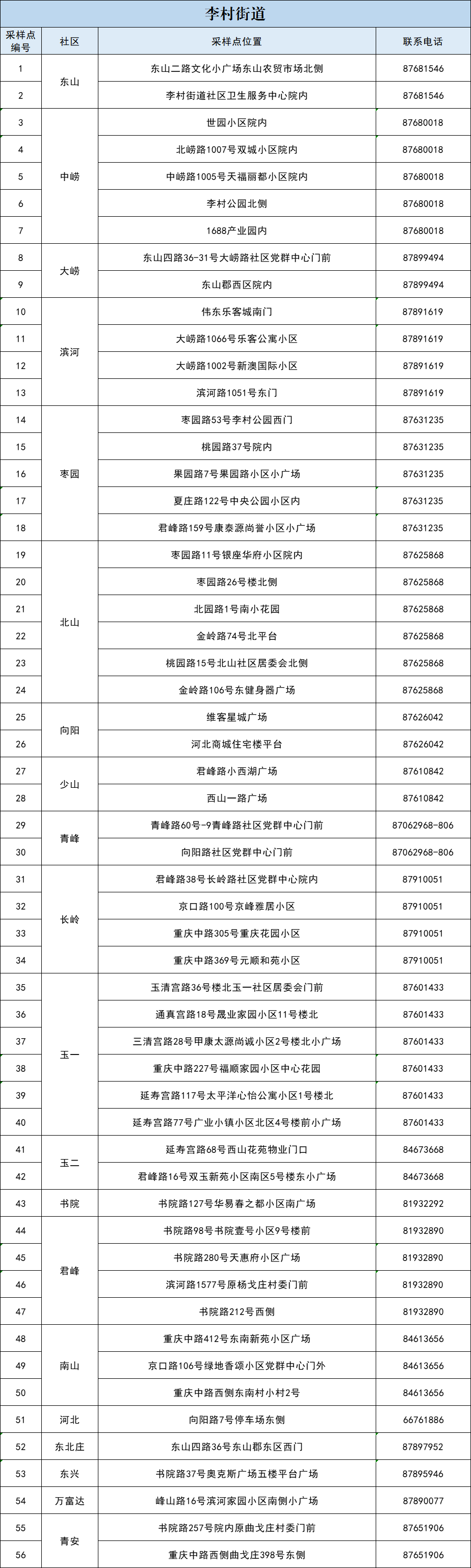 李滄區(qū)全體居民核酸檢測(cè)采樣點(diǎn)一覽表