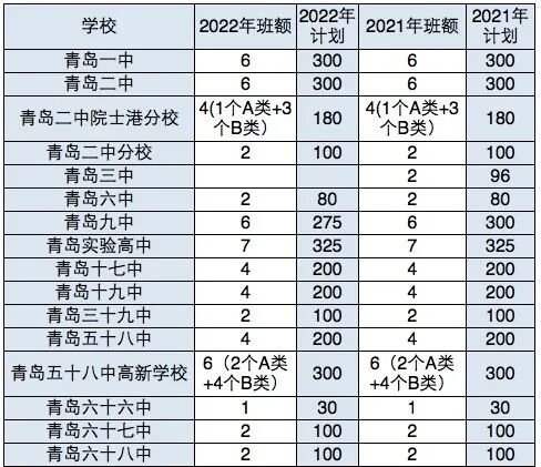 這里需要說明的是,在這28所局屬高中里,青島二中院士港分校和青島五十八中高新學(xué)校兩校略顯特別。兩校按照錄取方式的不同均分為A類班和B類班,雖然A類班和B類班在統(tǒng)計(jì)時(shí)都算入自招計(jì)劃,也均在自招簡章中予以公布。但在實(shí)際招生流程中,僅有A類班需要學(xué)生參加自招考試,B類班實(shí)際是采用校本部普通班錄取線線下5分的方式進(jìn)行劃線。通俗說,這兩校只有A類班145個(gè)計(jì)劃(45+100)在自招中實(shí)際投放。