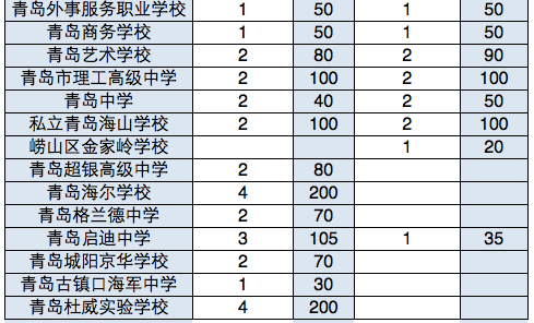 ④青島超銀高級(jí)中學(xué)、青島海爾學(xué)校、青島格蘭德學(xué)校、青島城陽京華學(xué)校、青島古鎮(zhèn)口海軍中學(xué)、青島杜威實(shí)驗(yàn)學(xué)校6所民辦高中加入自招陣營,提供了多達(dá)650個(gè)計(jì)劃。