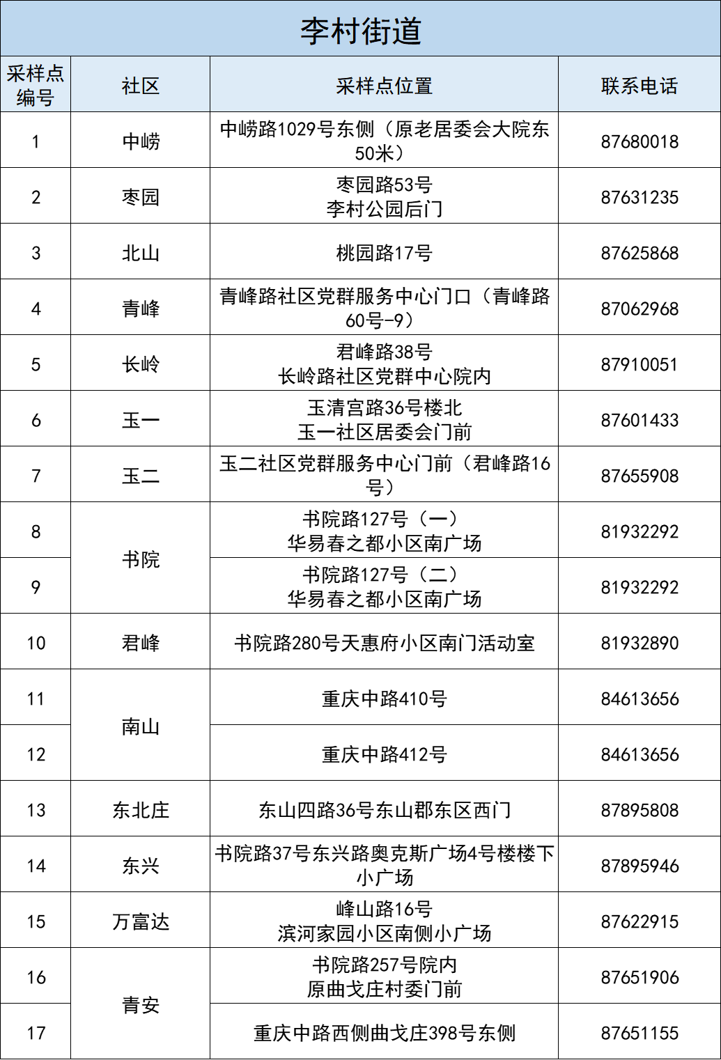 李滄區(qū)核酸檢測采樣點(diǎn)