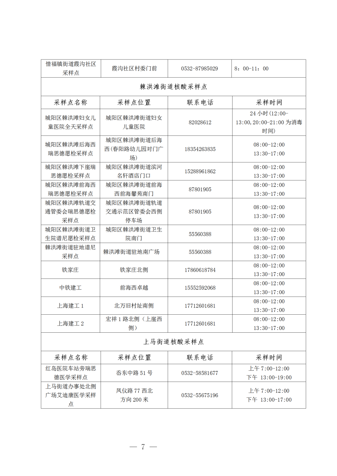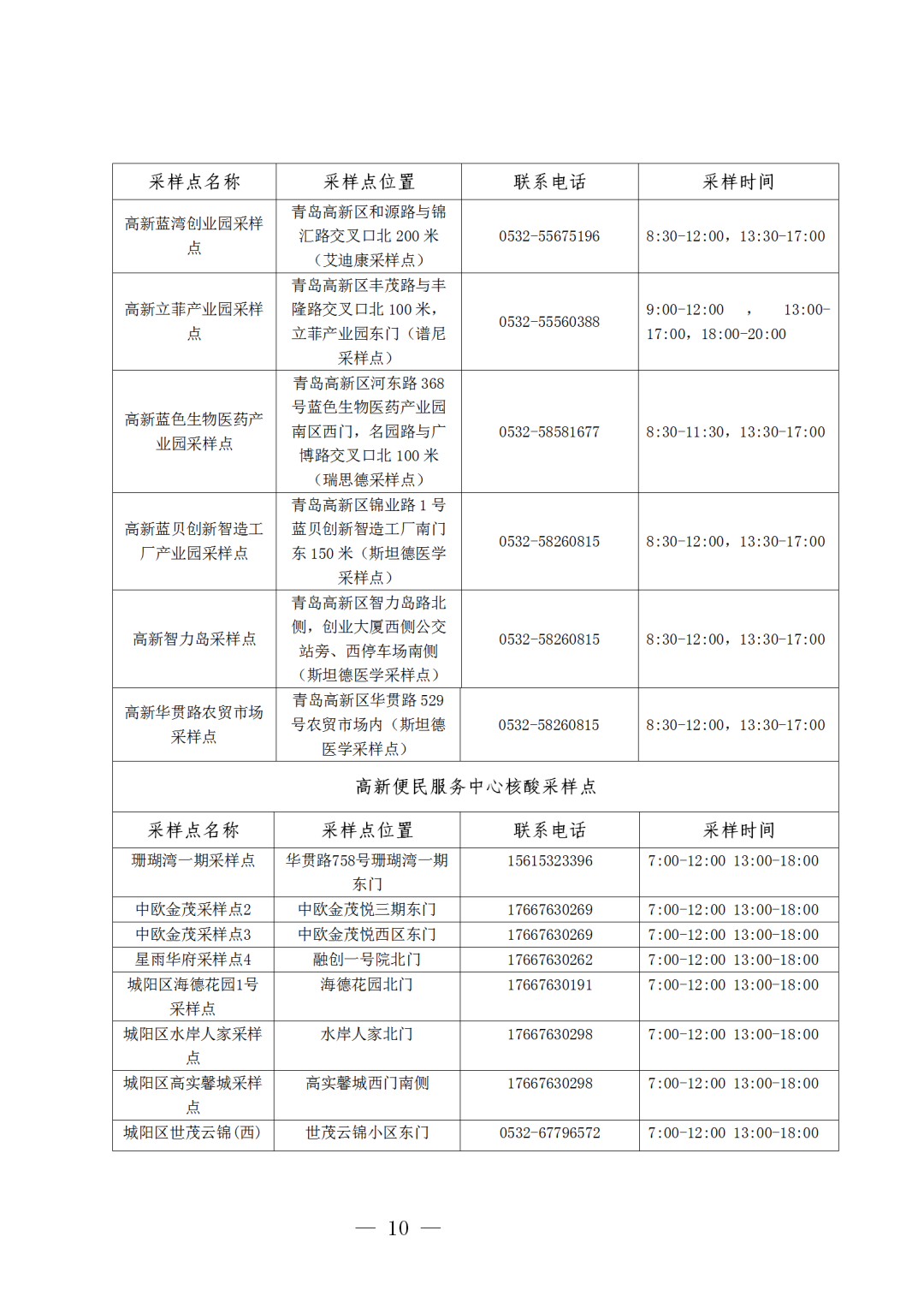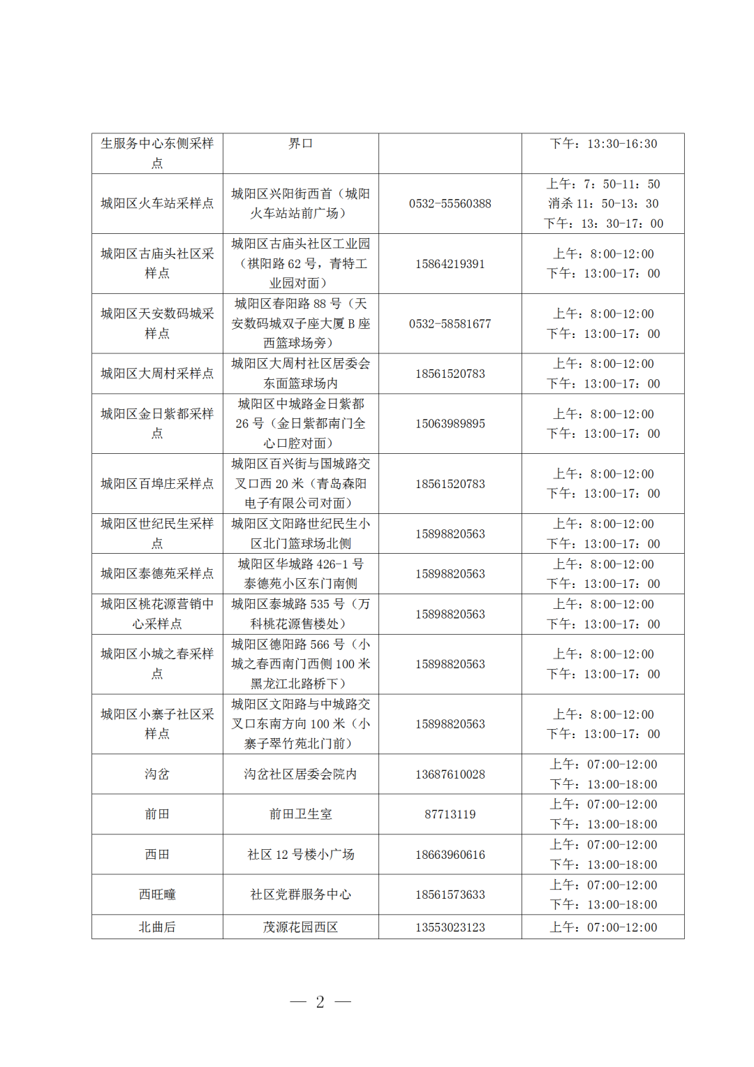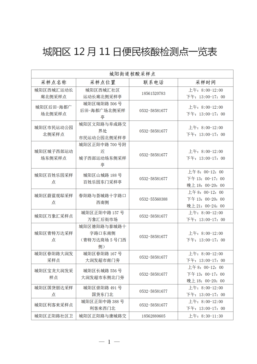 城陽(yáng)區(qū)12月11日便民核酸檢測(cè)點(diǎn)一覽表