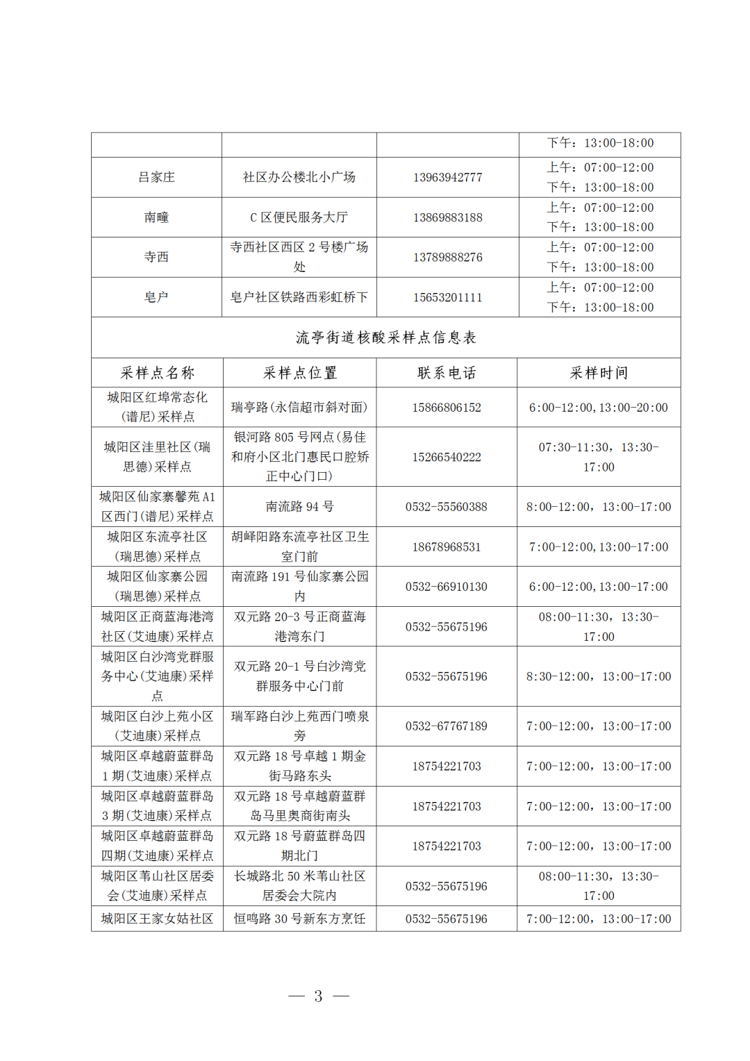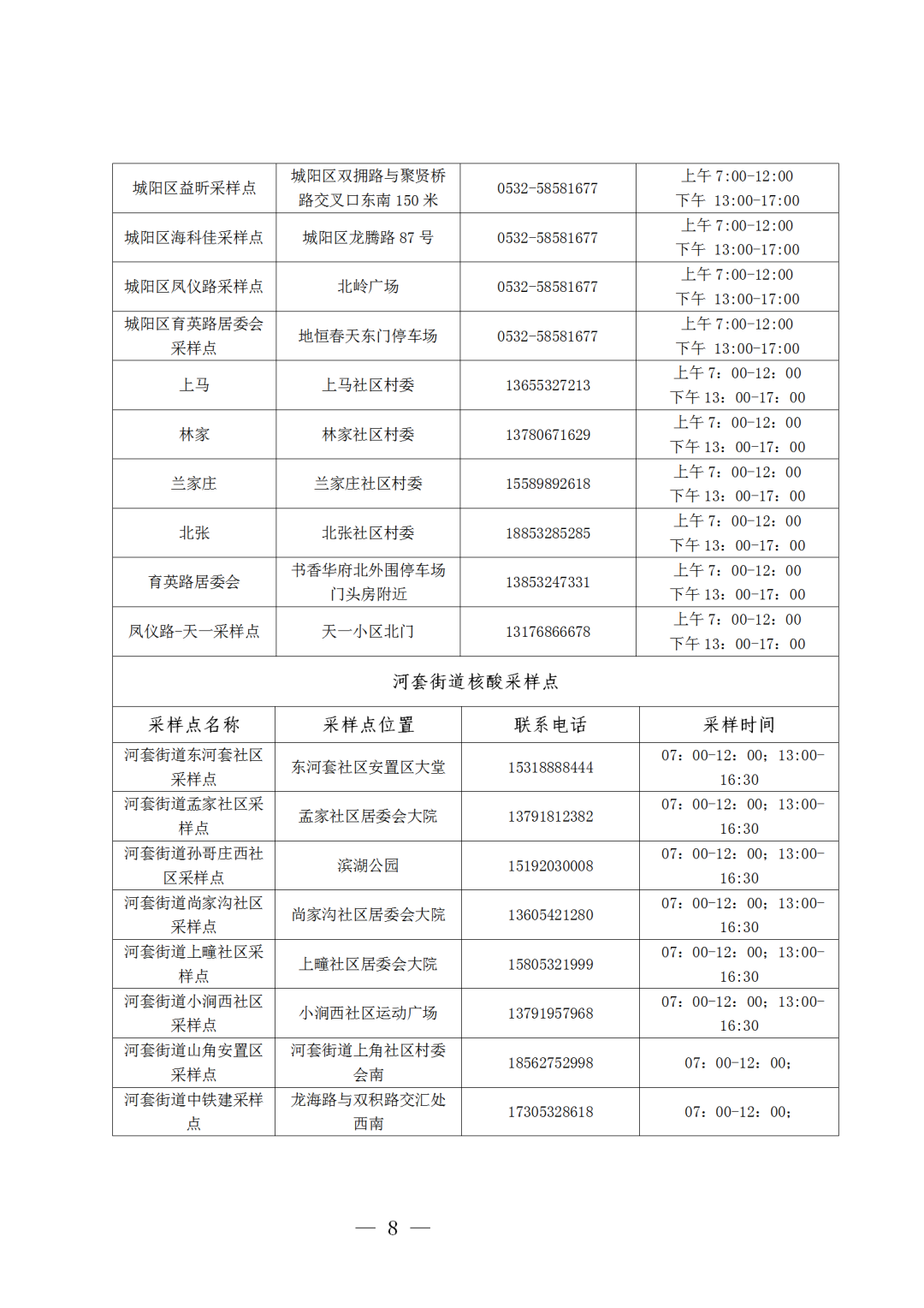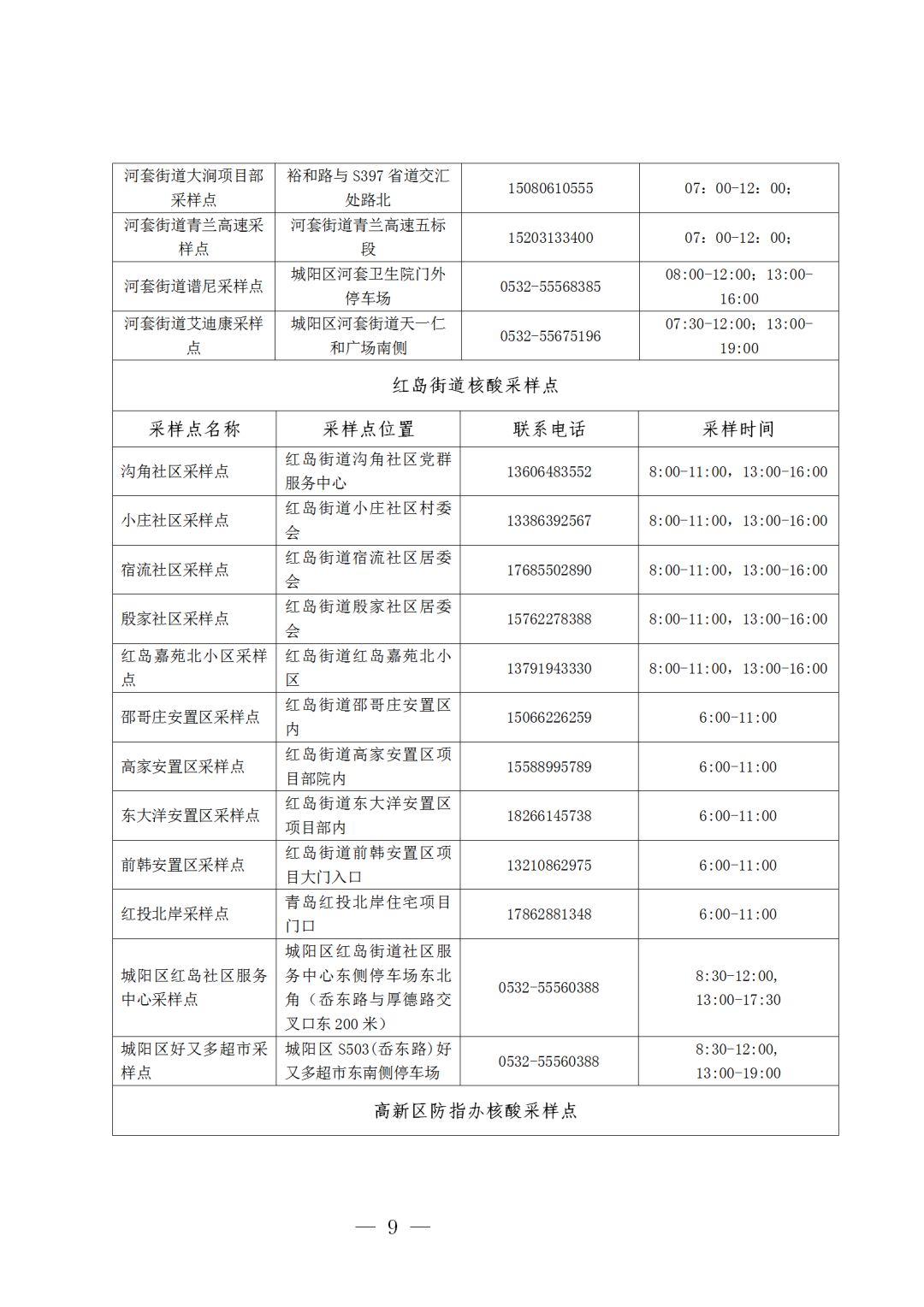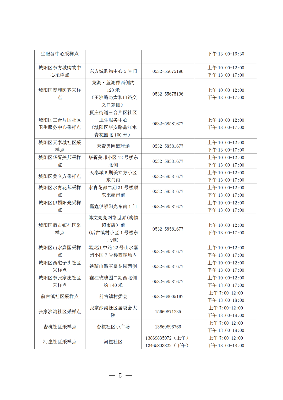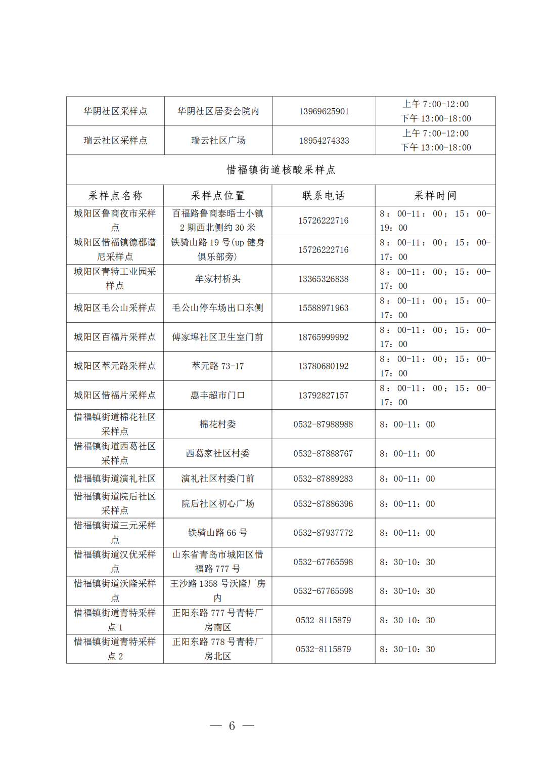 城陽(yáng)區(qū)12月11日便民核酸檢測(cè)點(diǎn)一覽表