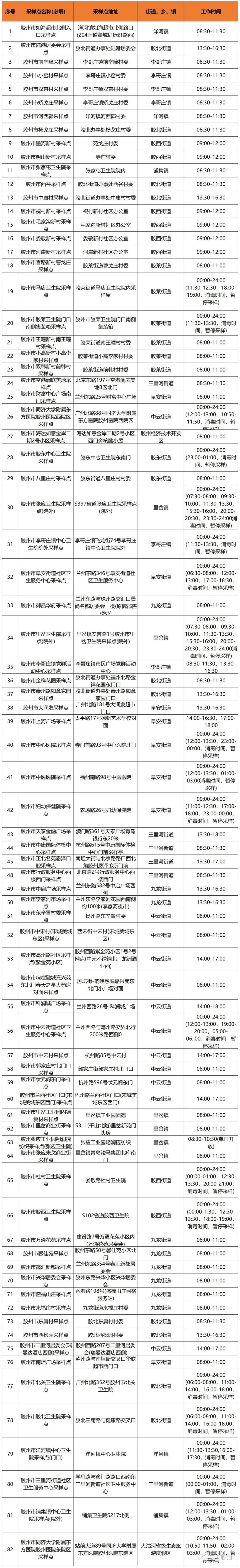 12月13日膠州市“愿檢盡檢”核酸采樣點公布