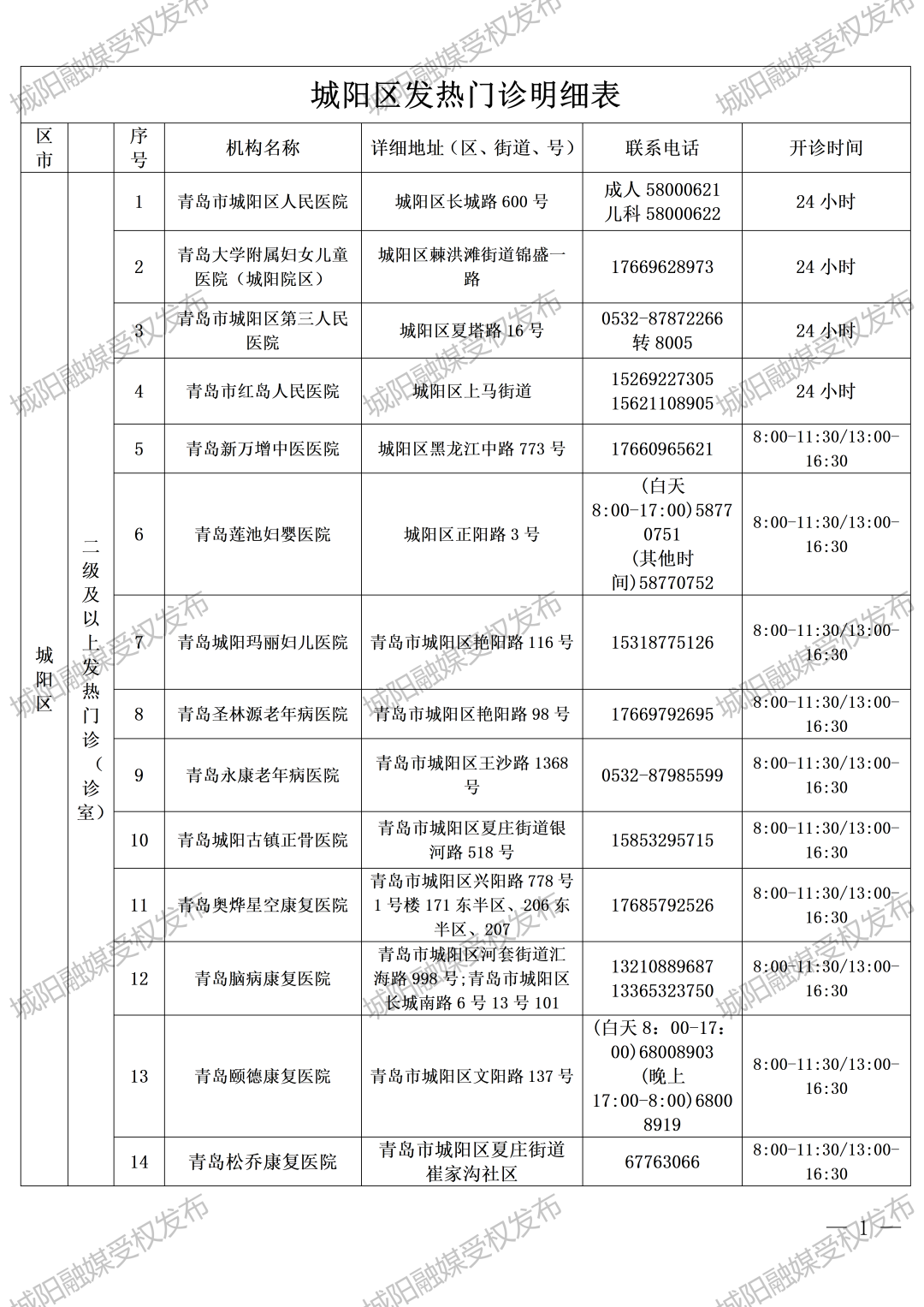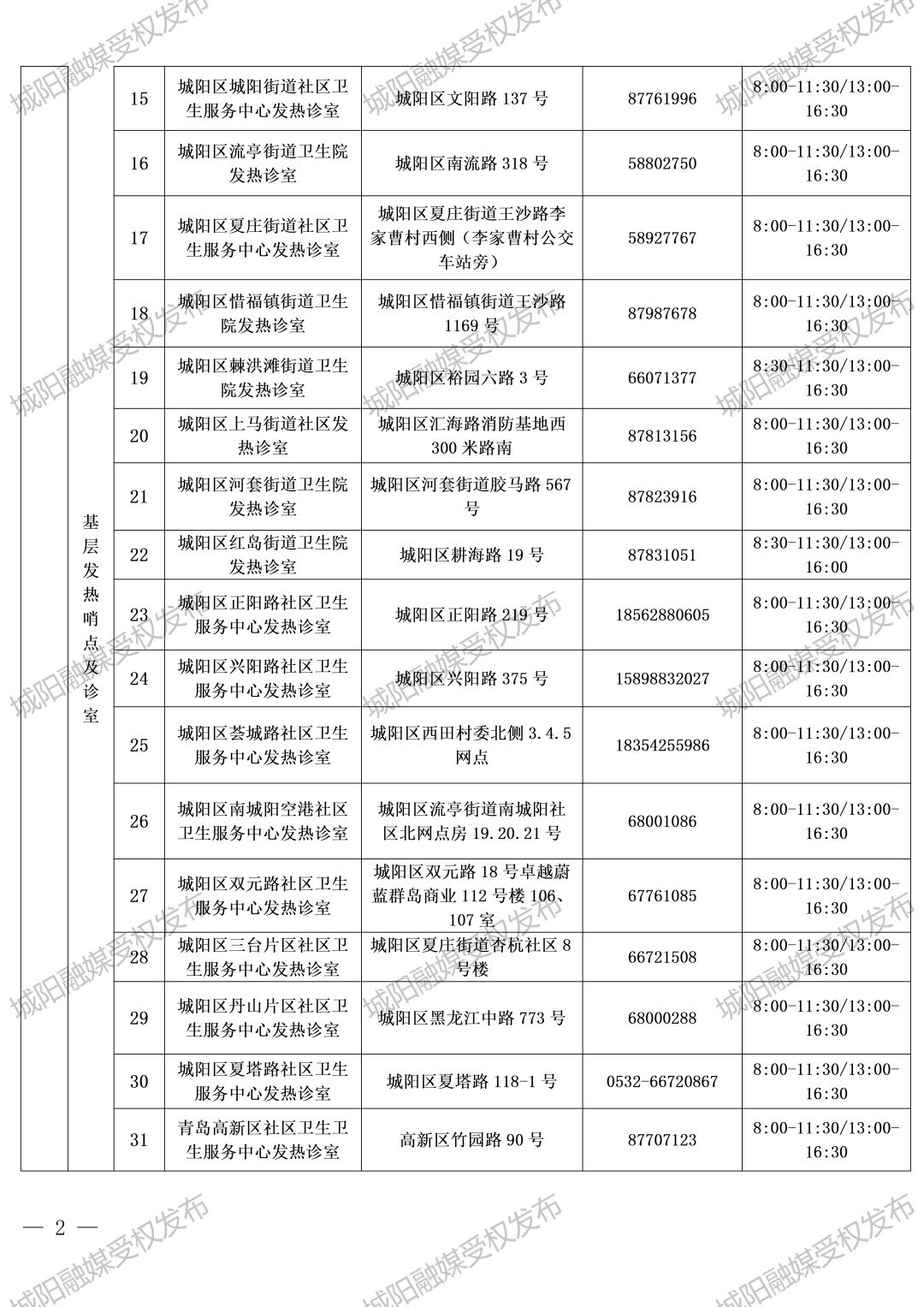 城陽區(qū)最新發(fā)布31家發(fā)熱門診明細