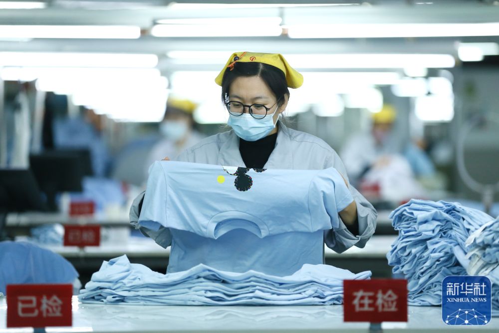 ↑12月16日,青島市即墨區(qū)一家服裝企業(yè)的工人在檢驗(yàn)準(zhǔn)備出口到海外市場(chǎng)的產(chǎn)品。新華社發(fā)(梁孝鵬 攝)