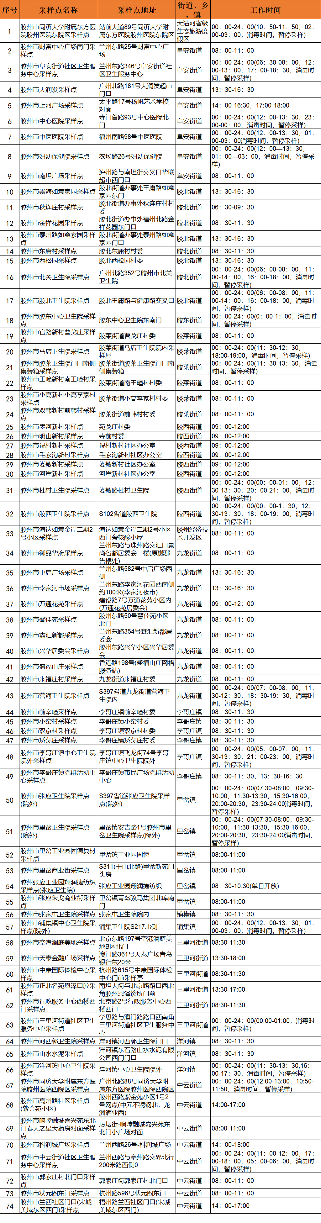 最新!膠州市“愿檢盡檢”核酸采樣點發(fā)布