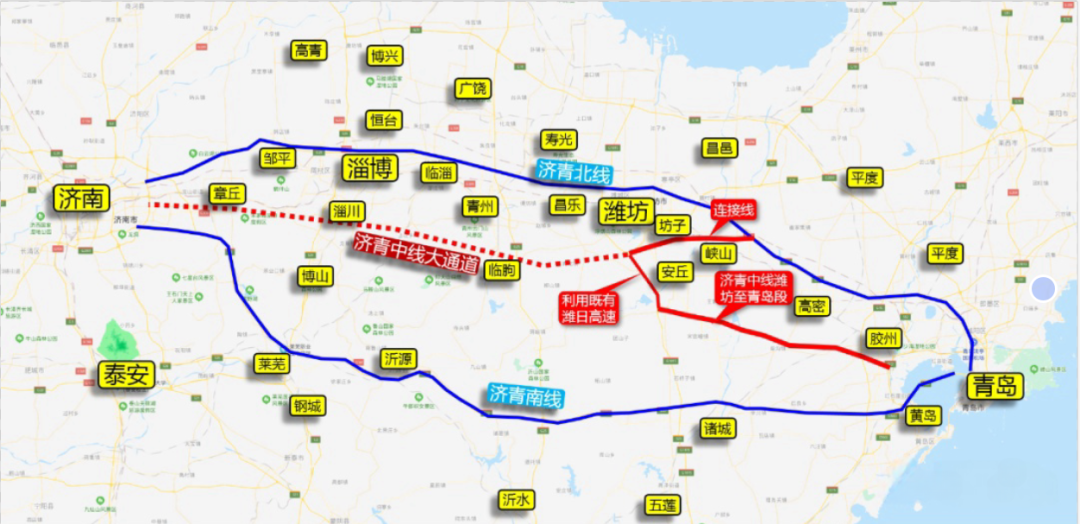 濟(jì)青中線(xiàn)走向示意圖