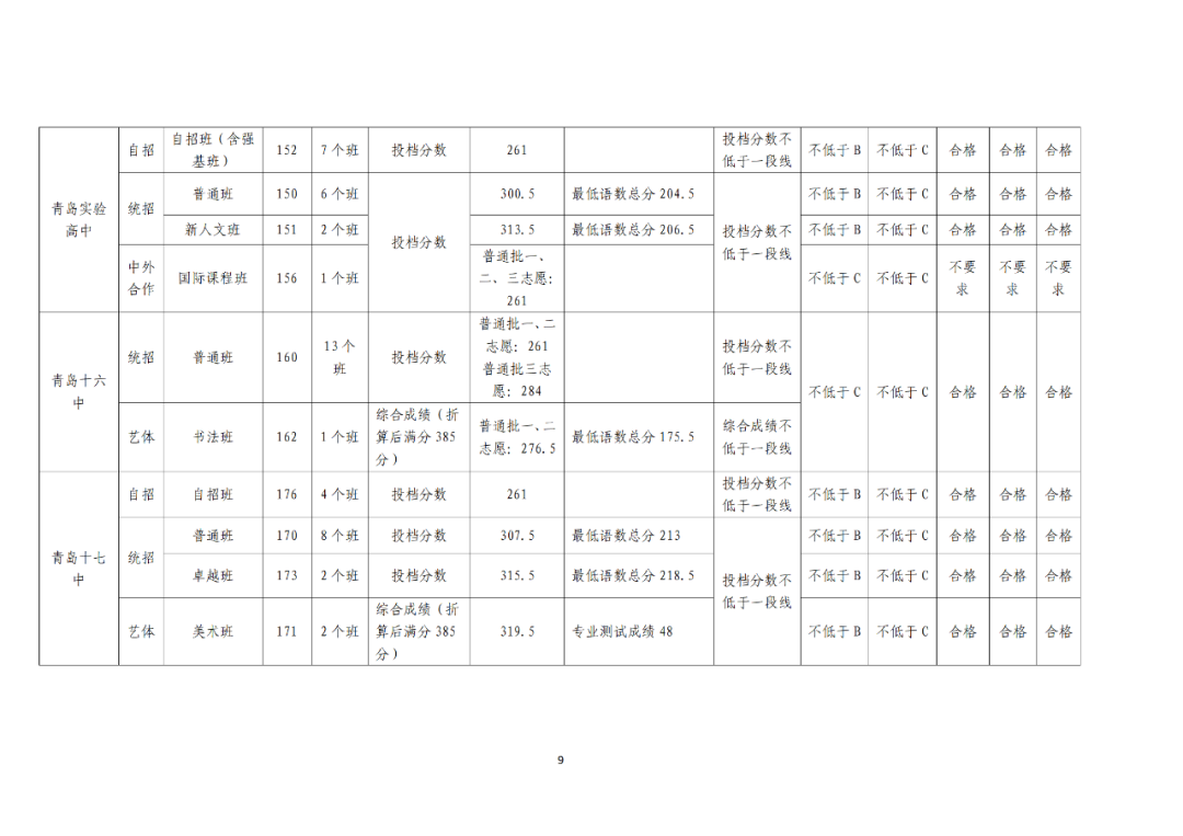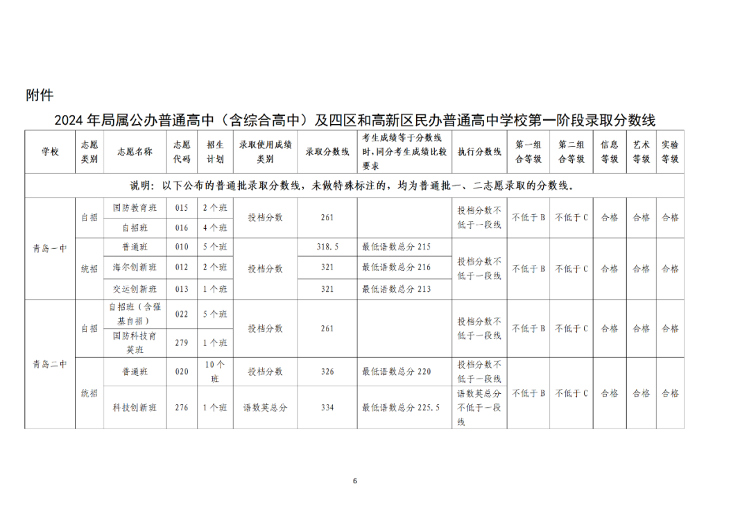2024年青島市局屬公辦普通高中及四區(qū)和高新區(qū)民辦普通高中第一階段招生錄取分?jǐn)?shù)線公告