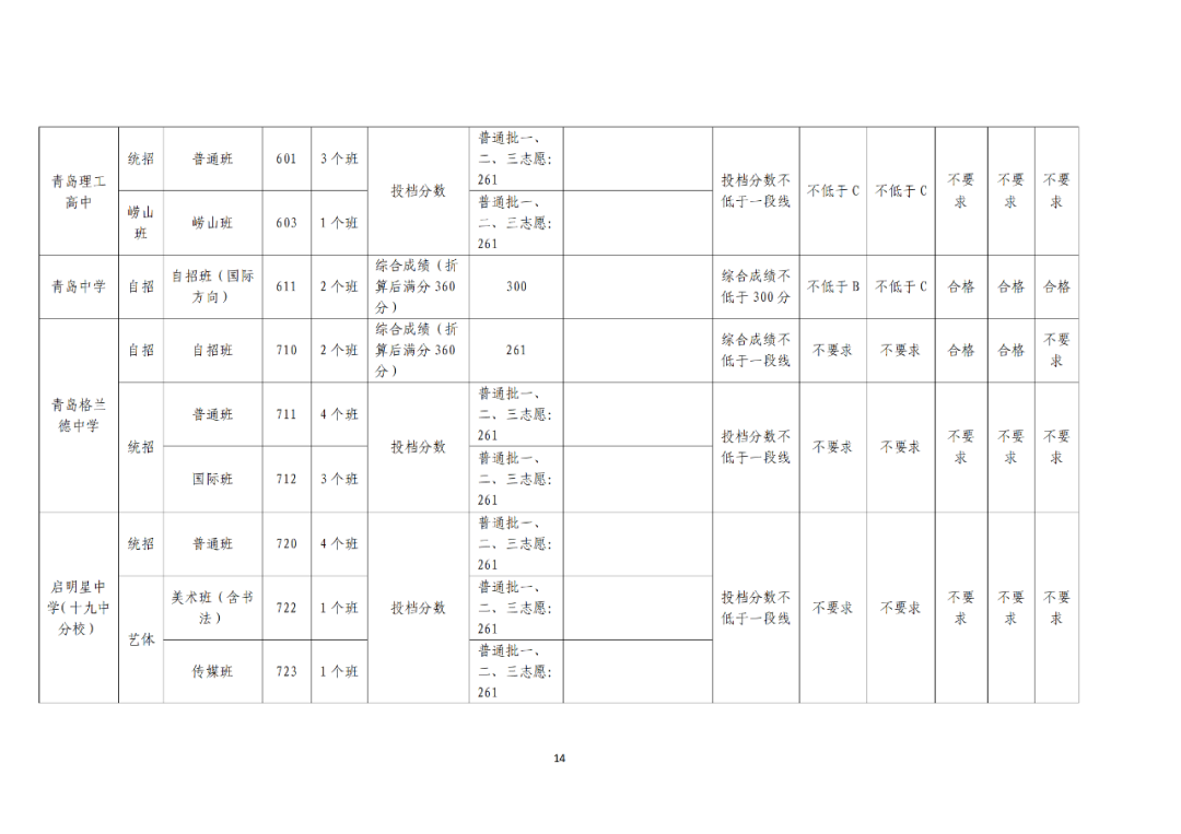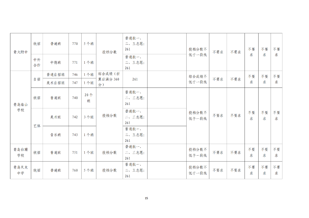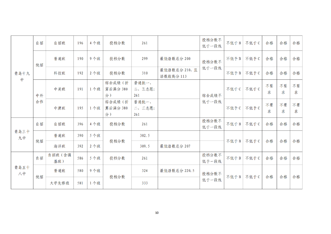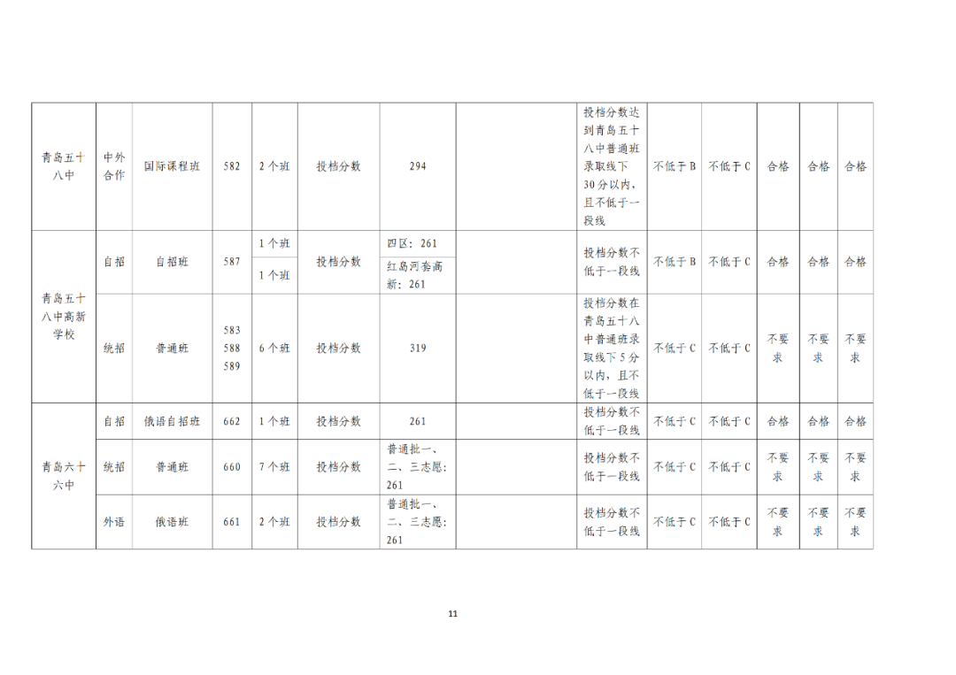 2024年青島市四區(qū)和高新區(qū)高中階段招生分?jǐn)?shù)帶招生計劃