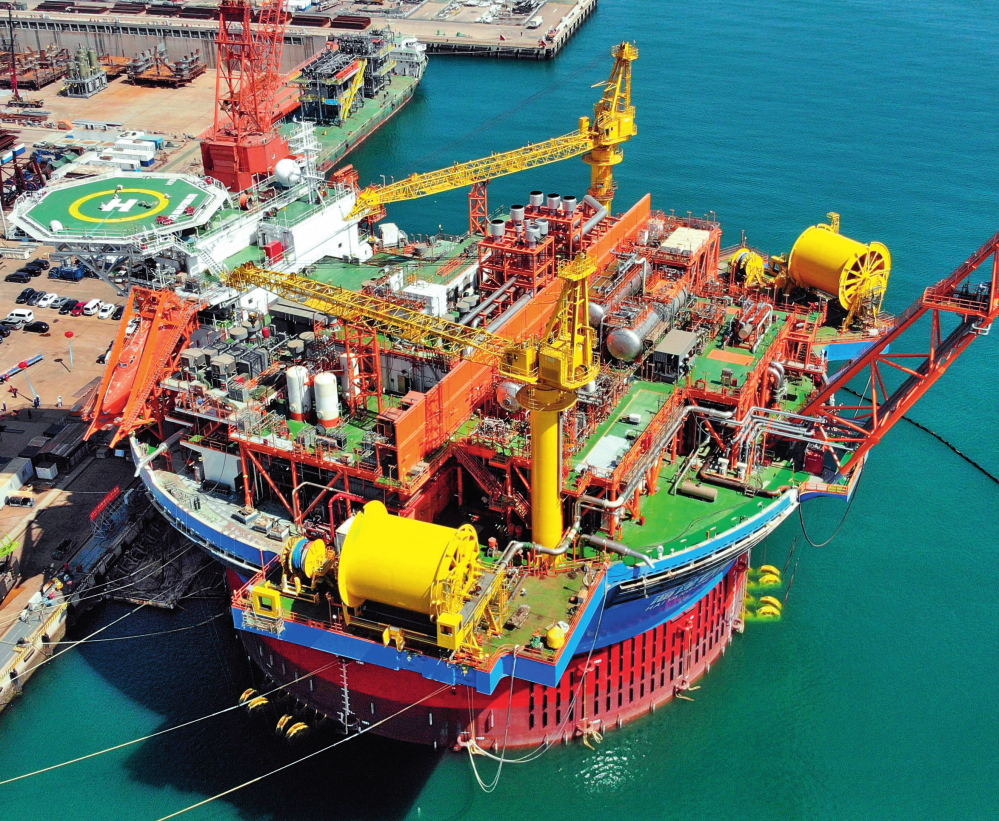 由我國自主設(shè)計建造的亞洲首艘圓筒型浮式生產(chǎn)儲卸油裝置 (FPSO)“??惶枴痹谏綎|青島完工交付,標(biāo)志著我國深水油氣裝備自主設(shè)計建造關(guān)鍵技術(shù)取得重大突破(2024年 4月 26日攝)李紫恒 攝