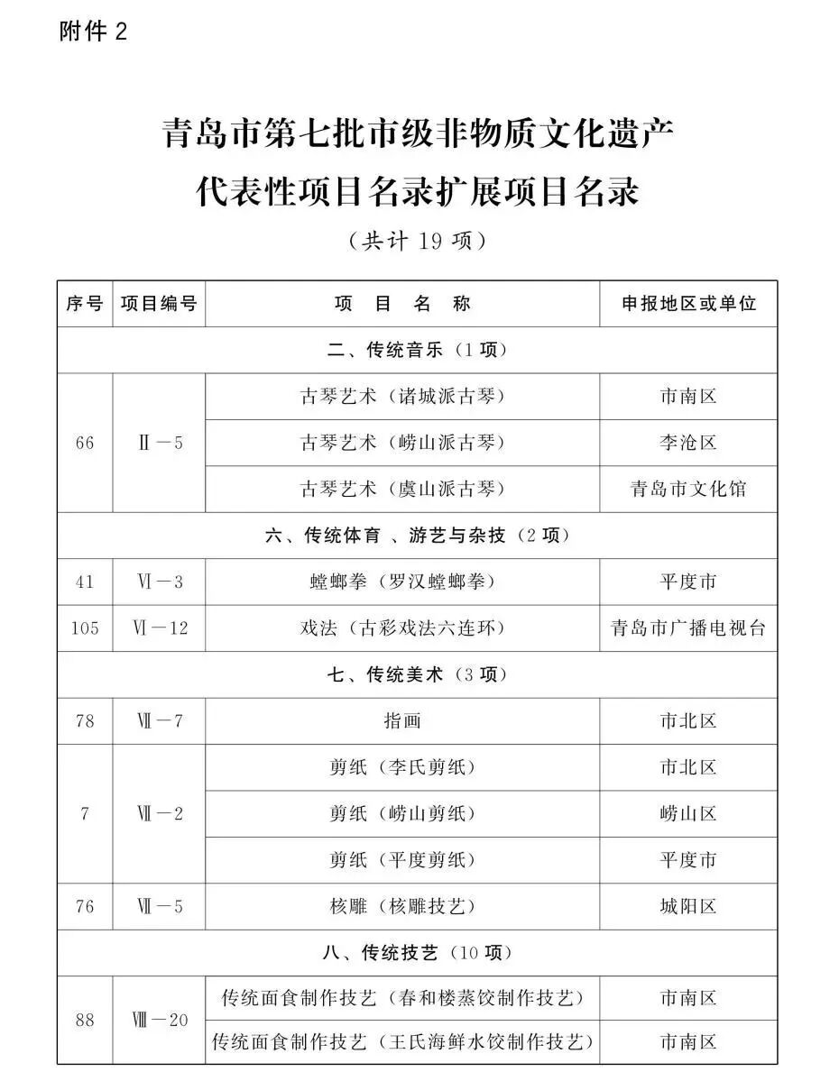 附青島市第七批市級非物質(zhì)文化遺產(chǎn)名錄: