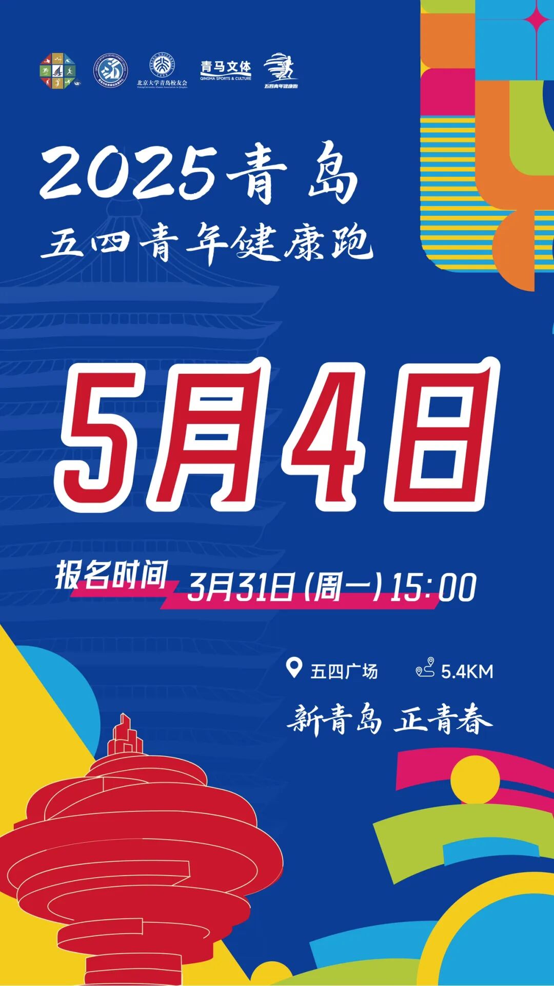 2025青島五四青年健康跑報(bào)名通道于3月31日(周一)15:00正式開啟!5月4日,5.4km,5400名參賽選手,讓我們用奔跑紀(jì)念五四愛(ài)國(guó)運(yùn)動(dòng),敬請(qǐng)期待~