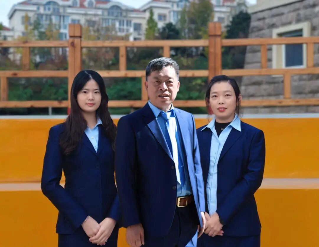 金牌獲得者陳亮宇(中)與教練員郭京君(右一)、韓格格(左一)合影