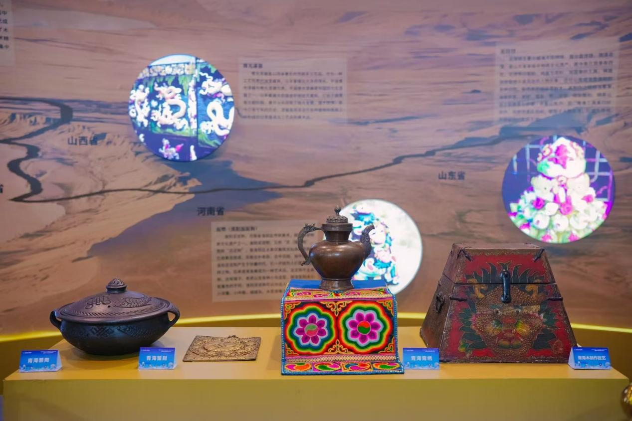 現(xiàn)場的“沿著黃河遇見海”沿黃九?。▍^(qū))傳統(tǒng)文化主題調(diào)研成果展,薈萃青海、四川、甘肅等沿黃九省(區(qū))的代表性手造,觀眾可近距離觀看黃河文明滋養(yǎng)下的手造藝術(shù)瑰寶。