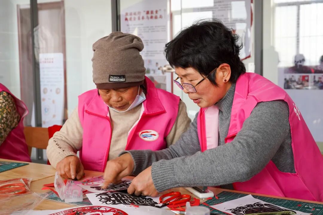 在青島西海岸新區(qū)大場鎮(zhèn)三河埠村的活動室內(nèi),十幾位婦女圍坐一起,手中剪刀翻飛,一幅幅精美的剪紙作品漸漸成形——大紅“囍”字、成雙鴛鴦,處處洋溢著喜慶氣息。她們一邊剪紙,一邊閑話家常,冬日寒意被滿室暖陽驅(qū)散。