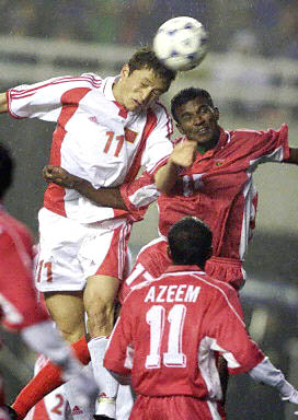 在4月22日晚上進(jìn)行世界杯預(yù)選賽亞洲區(qū)第9小組的比賽中,中國隊(duì)10-1戰(zhàn)勝了馬爾代夫