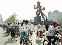 4月22日是第31個“地球日”,北京以“建綠色北京·迎綠色奧運” 為地球日的主旋律,成立了全國第一支“綠色奧運自行車隊”,旨在倡導市民選擇自行車這種環(huán)保、安全的交通工具。