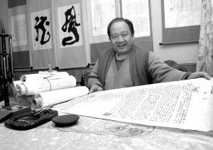 為了督促自己堅(jiān)持下去,并在練字的同時(shí)提高文學(xué)修養(yǎng),他決定抄寫巨著《史記》。經(jīng)過7年時(shí)間,他終于在2003年年底抄完了52萬多字的《史記》,寫成了寬40厘米、長150米的長卷。