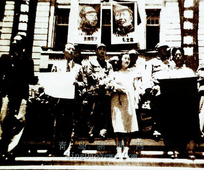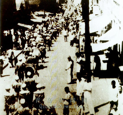 院子里一下子又忙碌起來,大家打開房門,有的裁彩紙,摘柳條,研筆墨,調(diào)漿糊,一會(huì)兒工夫,幾十張標(biāo)語旗就制作完了。這標(biāo)語旗的主要內(nèi)容是兩條:“中國共產(chǎn)黨萬歲!”“慶祝青島市解放!”這時(shí)的院子大門還是緊閉著的,不過此時(shí)街面上平靜多了。 膠州路匯成鋼鐵洪流 那天是端午節(jié),又是青島即將解放的好日子,眾人正在舉杯祝賀的時(shí)候,忽然大街上傳來呼喊:“解放軍來了,解放軍來了!解放軍已到膠州路了!”大家午飯也顧不上吃,拿起事先準(zhǔn)備好的小旗子,敞開院門,沖上大街,直奔膠州路。