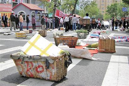 ????成武路非法夜市上人潮涌動(dòng),顧客多得像趕集,旁邊剛開張的費(fèi)縣路農(nóng)貿(mào)市場(chǎng)里卻人流稀少,看著攤位上新鮮的瓜果蔬菜賣不出去腐爛變質(zhì),費(fèi)縣路農(nóng)貿(mào)市場(chǎng)100多名攤主急了。昨天攤主們將瓜果蔬菜擺到馬路邊,正規(guī)經(jīng)營(yíng)者也開始像游商浮販一樣占路經(jīng)營(yíng),附近道路交通一度受阻,城管執(zhí)法人員趕到現(xiàn)場(chǎng)制止。