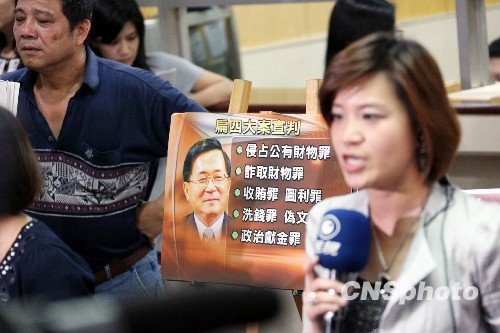 資料圖:2009年9月11日下午,涉及公務(wù)機(jī)要費(fèi)、龍?zhí)顿彽?、貪污等案,陳水扁、吳淑珍夫婦被臺北地方法院一審判處無期徒刑,褫奪公權(quán)終身。許多臺灣媒體制作小看板,在臺北地院內(nèi)介紹陳水扁等涉案情況。 中新社發(fā) 黃少華 攝