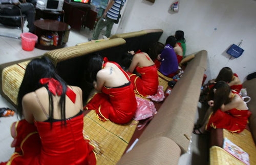 6月22日晚,南寧市公安局統(tǒng)一部署,對該市四個城區(qū)的游戲機賭博窩點及涉黃場所進行查處行動。在南寧仙葫大道18號金富盈大酒店的休閑會所內,10多名穿著暴露的女子坐在沙發(fā)上,逐個接受民警的檢查。