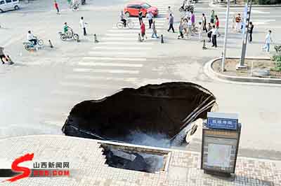 山西省人民醫(yī)院前地面塌陷 門診樓側(cè)塌(組圖)