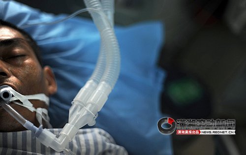 ????45歲的周道明,雙鬢已經(jīng)斑白,眼睛深凹。前天下午,他做了3個小時腹部探查手術(shù),切除將近1.5米長的小腸。這意味著,他的小腸壞死了一半。此外,彌漫性腹膜炎,感染性休克,急性腎功能不全和多器官功能衰竭,可能隨時剝奪他的生命。