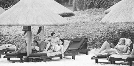 三亞對節(jié)假日期間的賓館酒店客房價格采取臨時性干預(yù),或?qū)⒊蔀橐豁楅L期制度。圖為游客在三亞一家酒店享受假日的悠閑。