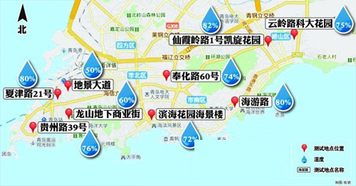當(dāng)天的測量結(jié)果顯示,7戶居民家的濕度全部在70% 以上,屬于對人體極不舒適的范疇。氣象專家介紹說,一般人在45%至55%的相對濕度下感覺最舒適,而在青島,6至8月份的戶外空氣相對濕度一般都在80%以上。