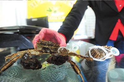 假陽(yáng)澄湖大閘蟹(右)與真品(左)戴著外觀相同的防偽戒指,讓消費(fèi)者很難分辨。 商販給普通蟹戴防偽戒指 最終,那名男子為記者挑選的是固城湖蟹,三公三母共六只蟹,要價(jià)210元。稱重后,男子直接將蟹拿到店鋪內(nèi),記者緊隨其后。 在店鋪內(nèi),男子從柜子中拿出一個(gè)透明塑料袋,里面裝有幾百個(gè)防偽戒指。從中取出十余個(gè),綁在蟹腿上。為防止防偽戒指脫落,男子還送了多個(gè)。此后,蟹被裝入印有“陽(yáng)澄湖大閘蟹”字樣的精品包裝中。男子說(shuō):“很多人都用這招送禮,我已經(jīng)賣出幾百只了,這方法沒(méi)問(wèn)題。”男子坦言,防偽戒指的編碼是假的。 走出市場(chǎng)后,記者將防偽戒指拆除,撥打上面標(biāo)注的400開(kāi)頭防偽電話。查詢結(jié)果為:清水大閘蟹。 商販輕易買到假防偽標(biāo)識(shí) 小陳是浙江人,從事水產(chǎn)生意兩年。說(shuō)起大閘蟹,小陳笑著說(shuō):“買的人不吃,吃的人不買?!?/p> 9月15日,小陳剛剛購(gòu)進(jìn)300多只固城湖大閘蟹。他說(shuō),去年曾和朋友一同前往陽(yáng)澄湖考察,那里湖水清澈如鏡,水淺、底硬,水草肥美,氣候適宜,是大閘蟹生長(zhǎng)的理想之地。開(kāi)湖時(shí),大量經(jīng)營(yíng)者會(huì)去湖中打撈。“陽(yáng)蟹”雖然有市場(chǎng),但數(shù)量不是很多,且真假難辨,他們有時(shí)都會(huì)走眼。 小陳說(shuō),目前,市場(chǎng)上銷售的河蟹以固城湖蟹和太湖蟹居多,“‘陽(yáng)蟹’想賣就能賣,只要稍微做點(diǎn)手腳”。 聽(tīng)說(shuō)記者買了戴防偽戒指的假“陽(yáng)蟹”后,小陳說(shuō),每年“陽(yáng)蟹”協(xié)會(huì)都會(huì)推出防偽標(biāo)識(shí),樣式各有不同。一個(gè)月前,京港海鮮市場(chǎng)內(nèi)的部分經(jīng)營(yíng)者私下購(gòu)買了大量假的防偽戒指,質(zhì)量各有不同,從幾毛到幾元不等。此外,所謂激光刻字防偽,只是為欺騙消費(fèi)者盡快購(gòu)買,可能壓根就沒(méi)有激光刻字的地方。 事后,記者在淘寶網(wǎng)上查詢發(fā)現(xiàn),竟然有網(wǎng)店在銷售假的“陽(yáng)蟹”防偽戒指,售價(jià)在1到2元,且圖片中的防偽戒指與去年“陽(yáng)蟹”協(xié)會(huì)網(wǎng)站上公布的并無(wú)差異。一名網(wǎng)店賣家說(shuō),防偽戒指在南方有專人制作,每年蟹上市前期會(huì)批量供應(yīng)。商家用防偽戒指來(lái)欺騙消費(fèi)者,也有些消費(fèi)者“自欺欺人”,“很多人都是自己要送禮,戴上防偽戒指后,禮品也會(huì)更有面子”。 記者在走訪京港海鮮市場(chǎng)、京深海鮮市場(chǎng)、四道口海鮮市場(chǎng)時(shí)發(fā)現(xiàn),均存在商販銷售假“陽(yáng)蟹”的情況。 ■現(xiàn)狀 今年“陽(yáng)蟹”剛剛抵京 據(jù)了解,17日上午,部分正宗“陽(yáng)蟹”運(yùn)抵京城。昨天上午,記者又走訪了京深海鮮市場(chǎng)和京港海鮮市場(chǎng),與之前的景象并無(wú)差異,市場(chǎng)內(nèi)仍未發(fā)現(xiàn)正宗“陽(yáng)蟹”出售。 “至少還需要兩三天”,一名賣家稱,首批“陽(yáng)蟹”會(huì)先供應(yīng)專賣店,流到市場(chǎng)上的真“陽(yáng)蟹”少之又少。 京深海鮮市場(chǎng)相關(guān)負(fù)責(zé)人稱,截至昨天上午,該市場(chǎng)內(nèi)未有“陽(yáng)蟹”銷售,何時(shí)到貨暫不確定。 隨后,記者再次來(lái)到平安大街上的一家專賣店。銷售人員稱,17日下午和昨天上午,約400只正宗“陽(yáng)蟹”送達(dá)店內(nèi)。記者看到,玻璃缸中每只蟹均戴有防偽戒指。銷售人員隨機(jī)抓取一只,打開(kāi)戒指亮出防偽碼,現(xiàn)場(chǎng)撥打電話查詢,語(yǔ)音提示稱“您所查詢的是國(guó)家地理標(biāo)志保護(hù)產(chǎn)品蘇州陽(yáng)澄湖大閘蟹”,銷售人員說(shuō),“陽(yáng)蟹”運(yùn)載過(guò)來(lái)時(shí)都是佩戴好戒指的,“每只螃蟹配一個(gè)戒指,沒(méi)有多余的”。 ■各方說(shuō)法 >>蘇州質(zhì)監(jiān)局 陽(yáng)蟹品牌受到法規(guī)保護(hù) 9月17日,蘇州市質(zhì)監(jiān)局標(biāo)準(zhǔn)化處工作人員表示,“陽(yáng)蟹”銷售市場(chǎng)混亂等現(xiàn)象確實(shí)存在,相關(guān)部門已采取各種應(yīng)對(duì)措施。2005年,國(guó)家質(zhì)檢總局批準(zhǔn)了“地理標(biāo)志產(chǎn)品”的保護(hù)措施,陽(yáng)澄湖110余平方公里水域的蟹類繁殖地帶均受到此保護(hù)。該“地理標(biāo)志產(chǎn)品”的專用名就是“陽(yáng)澄湖大閘蟹”,此后,國(guó)家質(zhì)檢總局還出臺(tái)了相關(guān)法規(guī),從而對(duì)“陽(yáng)蟹”品牌起到保護(hù)和約束的作用。 目前,已有近120家單位獲得了國(guó)家地理標(biāo)志的使用權(quán)?!暗皇钦f(shuō)只有這些單位才賣真陽(yáng)蟹?!痹撠?fù)責(zé)人說(shuō),“陽(yáng)蟹”市場(chǎng)不斷走俏,這些單位都有二級(jí)或三級(jí)經(jīng)銷商,這批經(jīng)銷商賣的“陽(yáng)蟹”也為正品。 每年防偽標(biāo)識(shí)的設(shè)計(jì)和樣式均不同,今年的防偽戒指由政府限量發(fā)放給“陽(yáng)蟹”協(xié)會(huì),再由協(xié)會(huì)發(fā)放到企業(yè)手中。 >>“陽(yáng)蟹”保護(hù)委 對(duì)售假行為可處以罰款 據(jù)蘇州市陽(yáng)澄湖大閘蟹地理標(biāo)志產(chǎn)品保護(hù)委員會(huì)相關(guān)負(fù)責(zé)人介紹,根據(jù)《蘇州市陽(yáng)澄湖大閘蟹地理標(biāo)志產(chǎn)品保護(hù)