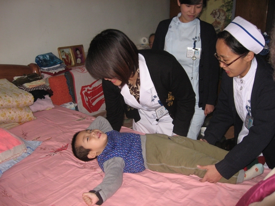 青島新聞網(wǎng)訊 春節(jié)即將來臨,當(dāng)大家都在歡歡喜喜忙年的時候,全國青年文明號海慈急診科的醫(yī)護(hù)人員來到人民路的貧困殘疾家庭張作寶的家中,張作寶夫婦都有殘疾,而他們4歲半的兒子又是個腦癱,對這個本就不寬裕的家庭來說,這無疑是雪上加霜。自從2010年了解到這個情況以后,急診科的醫(yī)護(hù)人員每年都要到這個家庭來看看,為老人和孩子查查體,送上冬日的溫暖。12月31日,海慈醫(yī)院康復(fù)專家唐詠春副主任醫(yī)師、急診科劉春芬護(hù)士長等再次來到張作寶家,在為患兒查體后,又指導(dǎo)家長在家中自己為患兒進(jìn)行康復(fù)訓(xùn)練,這樣既可以減少患兒康復(fù)的開支,又有利于患兒今后的康復(fù)。他們還給老人進(jìn)行了查體,叮囑老人按時服藥,有問題可以隨時和她們?nèi)〉寐?lián)系。 |