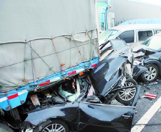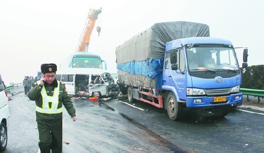 11輛車變身“碰碰車”撞成一團(tuán);滿載活雞的運(yùn)雞車撞散了架,整條路成了養(yǎng)雞場……1月17日早晨7時(shí)許,在榮烏高速公路濰坊段375KM — 384.4KM 處近十公里路段(由東向西)發(fā)生多起車輛相撞事故,事發(fā)后交警及時(shí)通知高速公路管理處封閉轄區(qū)收費(fèi)站口,交警、消防、120救護(hù)人員和過往司機(jī)等參與了營救,將傷者送到附近的醫(yī)院進(jìn)行搶救治療,經(jīng)過初步統(tǒng)計(jì),該路段共發(fā)生事故18起,43輛車不同程度受損,事故造成4人死亡,14人受傷,而造成事故的主要原因是因?yàn)樵撀范未箪F彌漫,能見度極低且路面結(jié)冰濕滑所致。