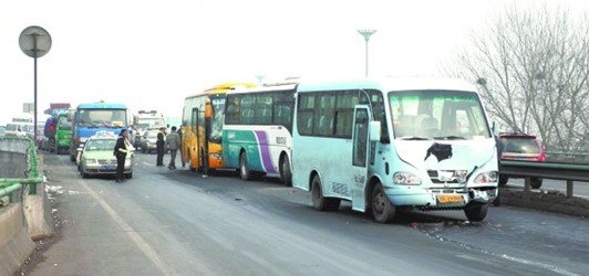 ![]() 連環(huán)撞的車中,后面的三輛客車受損較為嚴(yán)重。 ????2月14日下午,在城陽流亭立交橋上發(fā)生驚險一幕,四輛過路的客車突然發(fā)生連環(huán)相撞,所幸當(dāng)時四輛車的車速都不快,事故只造成最后面一輛客車上3人輕傷。而記者在現(xiàn)場采訪了解到,事故由一袋掉在路上的石墨引起。厚厚的一層粉末覆蓋路面后,具有潤滑作用的石墨使得約百米的路面成了“溜冰場”。據(jù)介紹,事發(fā)后,出事客車上的乘客和貨物被及時安排轉(zhuǎn)移,但由于事發(fā)地點是個交通要道,來往的車輛眾多,事故一度造成交通堵塞。 ????四車連撞三輛是大客 ????2月14日下午1時15分許,記者趕到現(xiàn)場看到,發(fā)生事故的車輛均為客車,其中三輛是大型客車,一輛是中巴客車,而位于后面的的三輛客車受損較為嚴(yán)重,不僅車身都受到較嚴(yán)重的撞擊,已經(jīng)扭曲變形,而且中間兩輛客車前后的風(fēng)擋玻璃也被撞碎,車身玻璃碎片和機器零件散落一地,而最后面的兩輛客車都是由即墨開往青島的客車,兩輛客車緊緊“咬”在一起。排在這兩輛車前方的是一輛石島到青島的中巴客車,而最前面的是一輛由煙臺開往青島的大客車。 ????“路面很滑,四輛客車是連環(huán)撞?!蹦繐粽呃钕壬f,當(dāng)時他也剛好駕車行駛到此處,突然聽到“咣當(dāng)……”的撞擊聲,他聞聲抬頭一看,只見前面的四輛客車撞在了一起。 ????采訪中,由石島到青島的中巴客車司機心有余悸地說:“不過好在當(dāng)時幾輛客車的車速都不快,我的脖子被晃了一下,也不是很重?!倍鴮τ谠蜻@位司機說是路面太光滑造成的。 ????百米“溜冰場”石墨造 ????“我看到前面的車停住了,就踩剎車,沒想到路面太滑沒剎住,直接撞了上去?!弊詈笠惠v客車的司機張先生介紹。據(jù)了解,事故路段是一段下坡路,坡度雖然不大,但是路面卻很滑,記者在現(xiàn)場看到,路面上像是鋪上了一層“黑冰”,從遠處看根本無法察覺,人走在上面卻很容易滑倒,而這層“黑冰”正好集中在這段下坡路上。這幾天氣溫有所回升,橋面也能照到陽光,路面結(jié)冰顯然是不可能的。 ????那么好好的橋面怎么會變得這么滑呢?記者在路邊找到了事故的“真兇”,原來是一袋黑色粉末。一位目擊者介紹,撒在路上的黑色粉末就是石墨,事故發(fā)生前從一輛貨車上不慎掉下的,來往的車輛碾軋上去頓時塵土飛揚,不一會兒立交橋近百米的路面變成了一個“溜冰場”。 ????講述: ????“當(dāng)時就感覺車子猛地撞了一下!” ????在道路旁邊,有二十幾個從事故客車上下來的乘客,“我們是坐在最后那輛車上的,當(dāng)時就感覺車子猛地撞了一下,聲音也特別響,車上的人都嚇了一跳!”據(jù)乘客李女士介紹,撞車后司機就讓乘客們下車了,他們正在路邊等待下輛車搭乘。 ????據(jù)現(xiàn)場的交警介紹,此次事故中造成最后一輛客車上三個乘客受輕傷,其中一個膝蓋受傷,另外兩人臉部受傷,目前已被送到附近的城陽人民醫(yī)院進行治療。幸運的是前面三輛客車上沒有乘客受傷。 ????記者在立交橋上看到,由于事故地段是個交通要道車流較大,等待通過的車輛排起了長隊,行駛非常緩慢,在處理事故的過程中,交通一度造成堵塞,后面陸續(xù)來車只得停車等候?,F(xiàn)場,在交警及時疏導(dǎo)下,附近的車輛緩慢通過了事故路段。 ????同時,記者了解到,由于處理事故需要一段時間,不少乘客心急如焚,在交警處理事故期間,橋上滯留的乘客也陸續(xù)被轉(zhuǎn)移走,而客車上裝的貨物也被客車工作人員轉(zhuǎn)到別的客車上拉走。 ????進展 ????盡快清理石墨防止再發(fā)事故 ????“路面太滑了,剛才我走著都被滑倒了?!背丝蛥窍壬f,地上殘留的是石墨,踩在上面非常光滑,稍有不慎就會滑倒,而且石墨滲透性很強,不少人的褲子上不一會就被染黑了,“這段路太滑,突然剎車太危險了,如果車速快得話更是不堪設(shè)想,希望有關(guān)部門能趕緊清理。”市民黃先生也表示。 ????現(xiàn)場處理事故的交警告訴記者,接到事故報警后他們就趕到了現(xiàn)場,當(dāng)時報警的時候并沒有說現(xiàn)場地面上撒滿了黑色的粉末,他們趕到現(xiàn)場之后才發(fā)現(xiàn)。擔(dān)心引起二次事故,他們已經(jīng)把情況向城陽指揮中心匯報,等待指揮中心過來處理。目前,交警部門正在進一步處理此事。(記者 劉鑫 徐新東 實習(xí)生 張曜啟) |