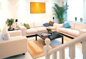 跨進(jìn)客廳,正中擺放的是三張純白亞麻布面的沙發(fā),只有上面斜倚的兩只湖藍(lán)色靠墊和墻上懸掛的金色的油畫,為這間以白色為主色調(diào)的客廳做著別致的點綴。而與客廳相連的餐廳,選擇的主色調(diào)也是白色,讓人首先聯(lián)想到清雅和干凈。就連落地窗前金屬結(jié)構(gòu)的餐桌和椅子熠熠閃著的冷光,以及桌上厚重的瓷質(zhì)餐盤凝聚的樸拙和靜謐,似乎都在告訴來客,女主人的生活主張與她本人愛“熱鬧”的個性完全不同。至于李湘深感驕傲的那幾套式樣新穎的餐具,那是她從泰國帶回來的,李湘說她十分偏愛泰國的生活用品。這些純手工制作的廚具替素凈的餐廳增添一份生活情趣。