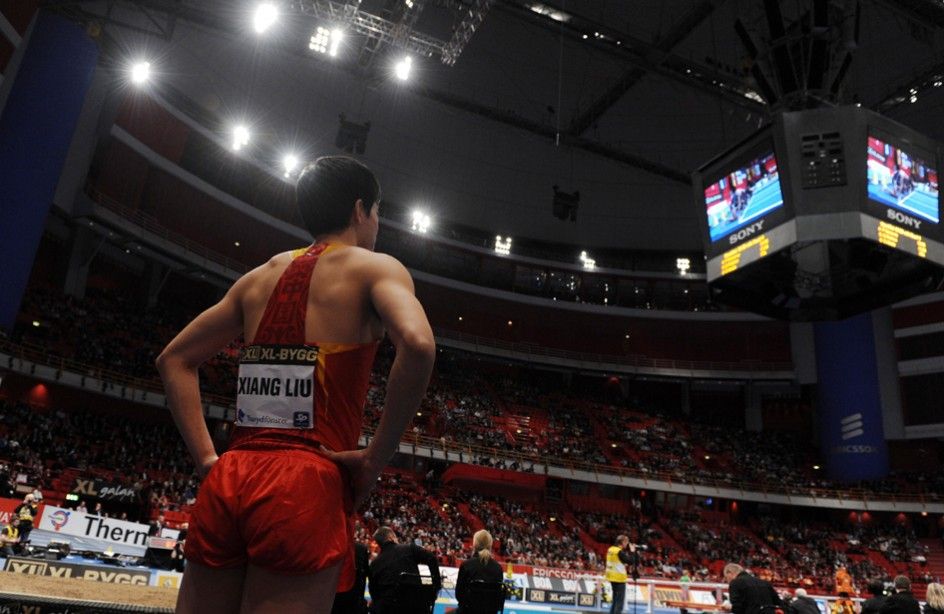 2月23日,在瑞典斯德哥爾摩進(jìn)行的室內(nèi)田徑賽男子60米欄比賽中,中國選手劉翔因搶跑被取消比賽資格,古巴選手羅伯斯以7秒66的成績獲得第一名。圖為劉翔因搶跑被取消比賽資格后站在場邊。馬寧攝 圖片來源:新華網(wǎng)