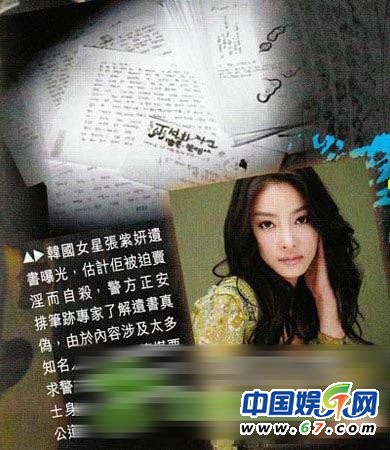 韓國自殺女星張紫妍遺書曝被迫賣淫