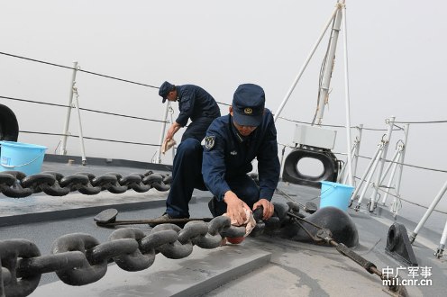 3月21日,海軍第十一護航編隊首次獨立執(zhí)行護航任務(wù)。受沙塵暴影響,能見度降低。圖為“青島”艦官兵在清潔掃除。(米晉國攝影) 我第十一批護航編隊與第十護航編隊分航在即,第十批編隊“青海湖”艦奉命在離索馬里半島東北方向,阿盧拉角以東100海里的海域待機。就在這條國際推薦的運輸航道上,竟然有海盜小艇狼一般地直撲上去,企圖劫艦。我們猜測,海盜們一定是把“青海湖”補給艦誤認(rèn)為商船了。因為,當(dāng)他們抵近時,官兵只發(fā)射了幾發(fā)爆震彈,這些海盜就嚇得做舉手投降狀了。 19日夜間,記者參與編隊指揮所值班。午夜時分,接到“青島”艦值更官的報告:在我左舷15度,距離45鏈,發(fā)現(xiàn)兩批小目標(biāo)。記者趕忙來到駕駛室了解詳情。 最先發(fā)現(xiàn)目標(biāo)的是導(dǎo)航兵方超。由于他過硬的軍事技能和強烈的責(zé)任心,在距目標(biāo)80多鏈的時候,就發(fā)現(xiàn)了這兩批不明回波,并及時報告。 前一天還明月高懸、繁星滿天的亞丁灣,不知何時竟然變得夜霧迷茫了。而此時,風(fēng)力加大、海面一浪擊得萬浪起,空氣中似乎彌漫著沙土的味道。 記者通過光電觀察看到,目標(biāo)為一艘母船拖帶著3艘小艇。4艘艇隱伏在船隊必經(jīng)之路的汪洋大海中,沒有一絲兒燈光。很明顯,這是伺機“撲食”的疑似海盜小艇。 此時,編隊正采取伴隨護航的方式,護衛(wèi)著來自不同國家的船舶由曼德海峽南口海域向亞丁灣東部駛?cè)?。隨著會與距離接近,編指果斷下達口令,打開艦舷探照設(shè)備,實施警示性掃海。在強光的震懾下,疑似海盜船只得打開船燈,并向后退去。 很快天亮了,記者這才發(fā)現(xiàn),昨晚的大霧其實是沙塵暴襲擾。早間來自中央人民廣播電臺“新聞和報紙摘要”節(jié)目的消息印證了這個情形:一股強沙塵暴昨天襲擊了包括也門首都薩那在內(nèi)的11個省份,部分地區(qū)能見度僅200米,薩那國際機場所有航班被迫取消。 當(dāng)?shù)貢r間今天上午9時,編隊開始執(zhí)行抵達亞丁灣、索馬里海域以來的首次獨立護航任務(wù)。來自南京遠(yuǎn)勝船務(wù)有限公司的“聯(lián)合艾瑪”號、上海振華船運有限公司的“振華22”號、中遠(yuǎn)香港的“剛強”號等8艘中外船舶,在海軍第十一批護航編隊組織指揮下編隊成兩路組隊,向曼德海峽西部海域駛?cè)ァ?/p> 今天繼續(xù)受沙塵天氣影響,海上能見度不足1海里,這給編隊護航造成了一定的困難。編隊指揮所要求全體官兵加強分析研判,準(zhǔn)確把握態(tài)勢,確保一聲令下,迅即行動,積極穩(wěn)妥處置各種情況。 記者在編隊指揮所看到,這里部署周密,各艦正在運用多種手段加強觀察警戒。編隊參謀長王海江告訴記者:“盡管首次獨立護航就遭遇沙塵天氣和不太理想的海況,但我們完全能力完成護航任務(wù),做到編隊自身和被護商船安全。”他幽默而自信地說,“盡管‘狼’伏亞丁灣,但我們驅(qū)‘狼’有術(shù),一定能夠保護好被護的‘羊群’的!”(米晉國) |