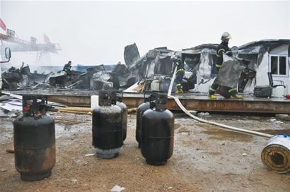 昨天上午11時30分左右,在遼陽西路卜峰蓮花北側(cè)的農(nóng)貿(mào)市場內(nèi),一排彩鋼板房突然躥起了火苗,火勢迅速蔓延,消防隊員緊急趕到現(xiàn)場,搶出5個被燒得滾燙的液化氣罐。在中午12時左右,明火被撲滅,萬幸的是事故沒有造成人員傷亡。 不到一刻鐘板房被燒塌 “遼陽西路一排彩鋼板房著火了,現(xiàn)在兩間房子已經(jīng)燒塌了!”昨天中午11時40分,市民魯先生撥打早報熱線82888000報料說,當(dāng)時正在購物的他突然聞到一股塑料被燒焦的味道,他抬頭一看,發(fā)現(xiàn)身后廢品收購站旁的板房躥出了火苗,而且火勢迅速蔓延,不到一刻鐘的時間,著火板房旁邊的一間板房也被大火吞噬,很快倒塌。 記者接到線索后迅速趕到現(xiàn)場,在離現(xiàn)場還有一公里的位置上,記者就看到著火點冒起滾滾濃煙。趕到現(xiàn)場后,記者發(fā)現(xiàn)大約有五六間彩鋼板房被燒毀,而在板房旁邊的空地上,是5個被消防隊員搶出的液化石油氣罐,氣罐都已經(jīng)被燒成黑色。記者在現(xiàn)場了解到,這些板房都是附近打工者和拾荒人臨時搭建的。據(jù)目擊者介紹,事發(fā)時屋內(nèi)沒人,所以初步斷定大火沒有造成人員傷亡。 亂搭線路成“禍根” “從外表看這都是金屬結(jié)構(gòu)的板房,咋一遇到火很快就被燒塌了?”圍觀市民孫女士提出了這樣的疑問。帶著她的疑問記者走到被燒毀的板房前發(fā)現(xiàn),雖然這些板房的外表都是金屬結(jié)構(gòu),但是內(nèi)部大部分連接件都是塑料制品,所以一遇到高溫明火,就很容易被燒毀。 “這可怎么辦,我的東西都燒沒了!”就在記者采訪的過程中,一名女子突然沖到一間被燒毀的板房前欲尋找什么東西,但被圍觀市民阻止。這名女子告訴記者,她和丈夫就在浮山后一帶打零工,當(dāng)時家中沒人,所以她不知道是什么引燃了板房。 “這些房子多數(shù)都屬于亂搭亂建的違法房,電線走線也都很不規(guī)范,要是屋內(nèi)沒人的話,可能是電線短路起火引發(fā)的意外?!笔忻窭钕壬聹y說。(記者 王壽林 攝影報道) |