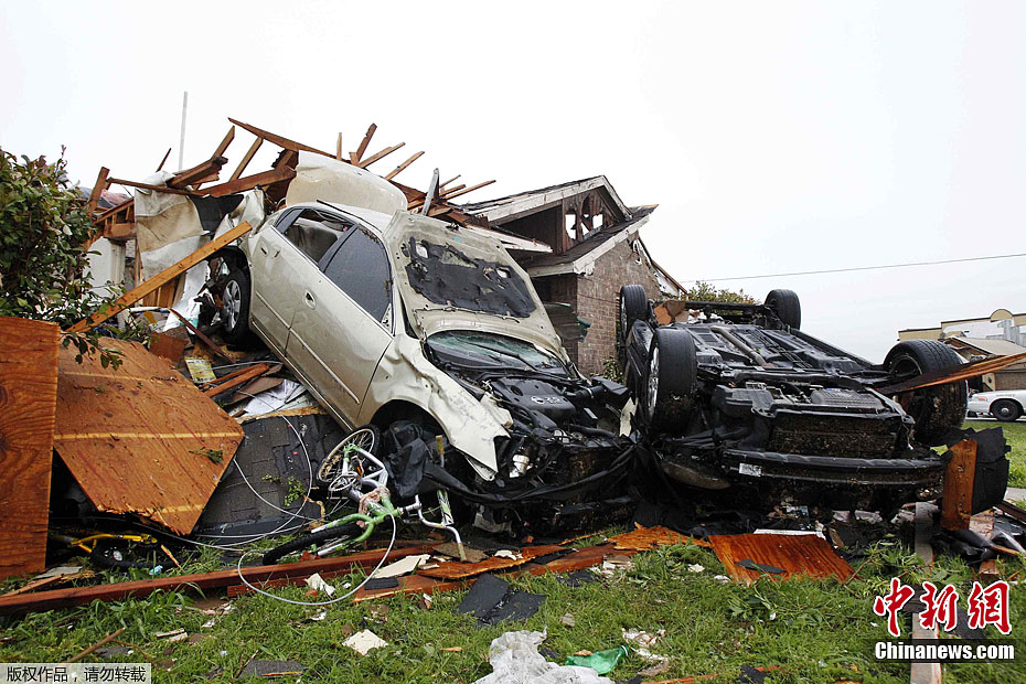 當?shù)貢r間4月3日下午,兩個破壞力強大的龍卷風席卷了美國中南部得克薩斯州的達拉斯和沃斯堡都市地區(qū),龍卷風中心所過之處將卡車卷到空中、撕毀民居房頂,使拖拉機和重型掛車散落到高速公路和停車場,目前官方尚無人員傷亡報告。圖為得克薩斯州受到龍卷風襲擊的地區(qū)。