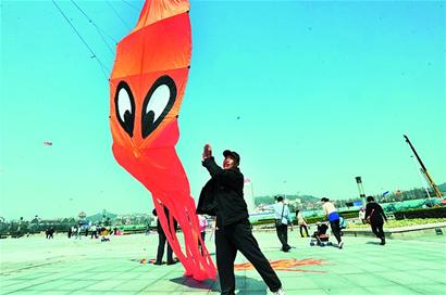 身長(zhǎng)12米的大章魚(yú)、會(huì)轉(zhuǎn)眼珠的紅金魚(yú)、張著血盆大口的鯊魚(yú),還有八腿橫行的威武螃蟹……昨天上午,數(shù)百名市民來(lái)到匯泉廣場(chǎng)參與由青島海底世界舉辦的 “鯊魚(yú)飛上天”風(fēng)箏比賽,上百只“海洋生物”風(fēng)箏翱翔天空,一時(shí)間,廣場(chǎng)上空仿佛成了魚(yú)蝦蟹們的“海底世界”。 在所有“上天”的海洋生物中,一個(gè)超大的白色大章魚(yú)最為“拉風(fēng)”,它隨風(fēng)舞動(dòng)著修長(zhǎng)的身體,顯得格外淡定飄逸,它的主人相錫杰告訴記者,這個(gè)大章魚(yú)身長(zhǎng)12米,全身沒(méi)有任何骨架支撐,是地地道道的軟體動(dòng)物,在它的頭部和身上布滿了風(fēng)道,因此能夠飄逸“飛天”。 大多數(shù)人都是帶著一個(gè)風(fēng)箏來(lái)放,59歲的風(fēng)箏愛(ài)好者姜建國(guó)卻一氣兒帶來(lái)了5個(gè),而且都是他親手制作的——身長(zhǎng)10米的紅章魚(yú)、八腿的螃蟹,還有鯉魚(yú)、金龍魚(yú)、大鯨魚(yú)。在姜建國(guó)嫻熟的操縱下,5條大魚(yú)輪番上天,個(gè)個(gè)搶眼。(記者 于小陽(yáng) 攝影報(bào)道) |