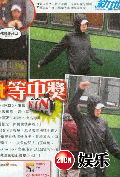 據(jù)香港媒體報道,王家衛(wèi)執(zhí)導(dǎo)、梁朝偉主演的電影《一代宗師》從籌備到拍攝足足花了十年時間,期間王家衛(wèi)靈感突然涌現(xiàn),又要求演員補戲,不知等戲正式上演,是否要到2046年。出名專業(yè)的偉仔都頗有微言:“我都不知道什么時候才能拍完,還有后期制作呢?!?/p> 46的偉仔與老婆劉嘉玲心急造人,拍戲耽誤了生子計劃,難免會生氣。不過生氣于事無補,最重要的是鍛煉好身體,養(yǎng)精蓄銳。早幾天偉仔不用開工,一個人去山頂跑步,一邊走一邊揚手做操,之后沿著山頂?shù)缆放芰私蟀雮€鐘,全長約7公里,不過這個數(shù)對于經(jīng)常做運動的他實屬小兒科。 <<<</strong>相關(guān)新聞:劉嘉玲梁朝偉北海道關(guān)房狂“造人” 連戰(zhàn)七日(圖) |