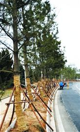 此次改造首先要清除原有草坪外運,對原土用機械進行深翻。然后,追施有機肥20余噸,表面回填種植土,并根據設計標高(保證廣場能夠自然順水)進行平整,并用小型壓路機進行壓實,防止草坪種植后的沉降。接下來,用碎土機進行碎土,使土質、土層密度均勻,土壤松散,土壤粒徑不大于0.5cm。人工找平綠化地,達到地形標高要求。接著,用機械進行播種,機械達不到的地方和細部用人工播種,力求草籽均勻,再覆蓋一層過篩薄土,覆蓋草簾保濕、保溫、防風。播種結束后,一次將綠地內的水澆足、澆透,噴水15天,每天2遍。出苗后,一個月成坪,進入日常維護管理。 |