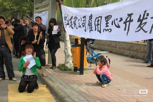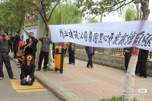 2012年4月14日上午,在河南省許昌市勞動路體育場門口,該市某樓盤業(yè)主掛起挽聯(lián),請來專業(yè)哭喪隊,“抗議”開發(fā)商提價預售商品房,現(xiàn)場引來不少市民圍觀。在維權過程中,始終未見開發(fā)商工作人員與業(yè)主溝通并解釋漲價原因。