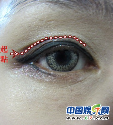 6.眼線 從尾端開始畫,這樣可先畫出眼尾要多出的長度,眼線拉長點(diǎn),視覺上臉也會(huì)變小!