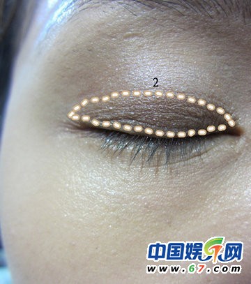 再用第2色涂滿眼摺處和下眼皮。