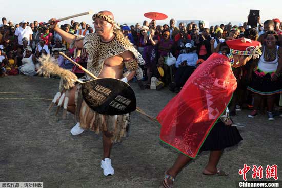 當(dāng)?shù)貢r(shí)間4月20日,南非總統(tǒng)祖馬在其家鄉(xiāng)夸祖魯-納塔爾省的恩康德拉村迎娶了他的現(xiàn)任第四位妻子班吉·恩格瑪。這是今年70歲的祖馬第6次結(jié)婚。 南非法律允許一夫多妻制。祖魯人是南非最大的黑人部族,該部族有一夫多妻的傳統(tǒng)。自南非種族隔離制度于1994年結(jié)束以來(lái),祖馬是該國(guó)第一個(gè)同時(shí)擁有數(shù)位妻子的總統(tǒng)。 當(dāng)?shù)貢r(shí)間4月20日,南非總統(tǒng)祖馬在其家鄉(xiāng)夸祖魯-納塔爾省的恩康德拉 當(dāng)?shù)貢r(shí)間4月20日,南非總統(tǒng)祖馬在其家鄉(xiāng)夸祖魯-納塔爾省的恩康德拉村迎娶了他的現(xiàn)任第四位妻子班吉·恩格瑪。這是今年70歲的祖馬第6次結(jié)婚。 |